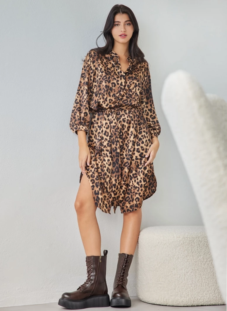 Φτηνός ✨ Εμπριμέ φόρεμα πουκάμισο NAIBA 52.030E – Leopard 🧨