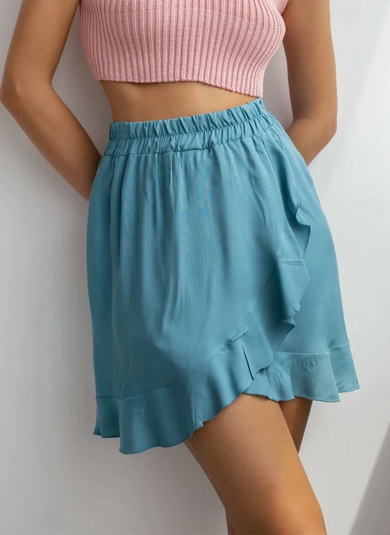 Εκπτωση 😀 Φούστα μίνι με βολάν NAIBA 29-018M – Petrol 🎁