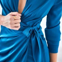 ΧΟΝΔΡΙΚΟ ΕΜΠΟΡΙΟ 🛒 The Fashion Project Φόρεμα σατέν με γιακά – Μπλε 💯