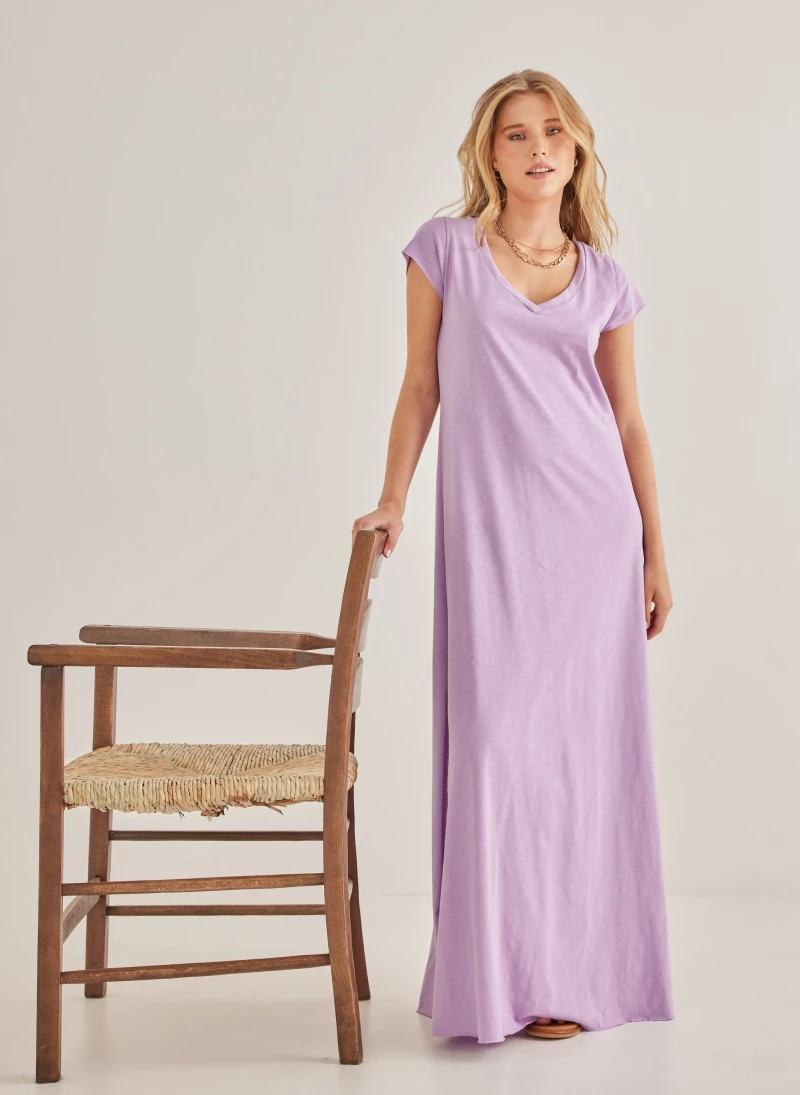 Πολύ καλή προσφορά ✔️ NAIBA Basic μακό Maxi φόρεμα με ανοίγματα – Λιλά 🧨
