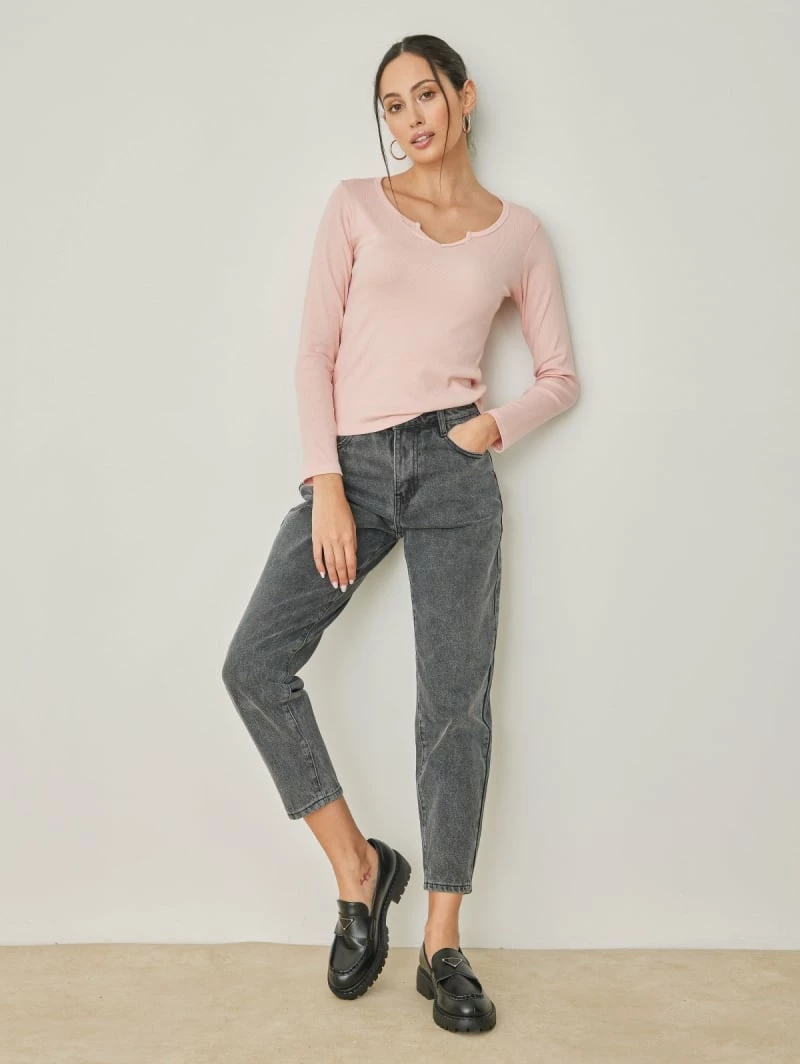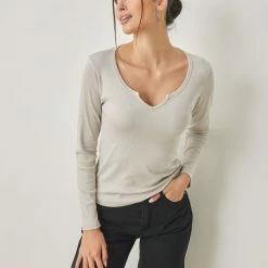 Μπλούζα μακρυμάνικη με v cut άνοιγμα. Η γραμμή του είναι ίσια. Ελληνικής ραφής.