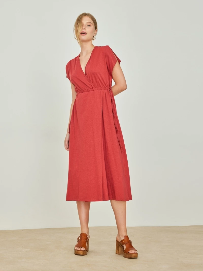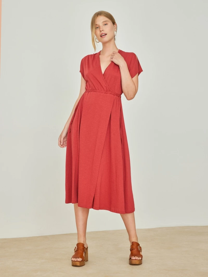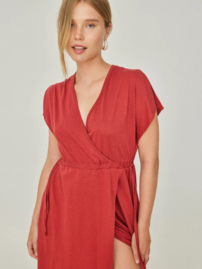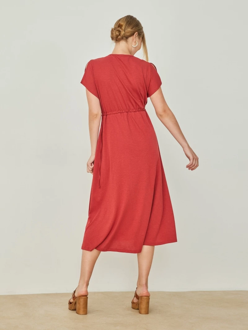 Ολοκαίνουργιο 🛒 Noobass Φόρεμα Casual με κορδόνι στη μέση – Κεραμιδί 🤩