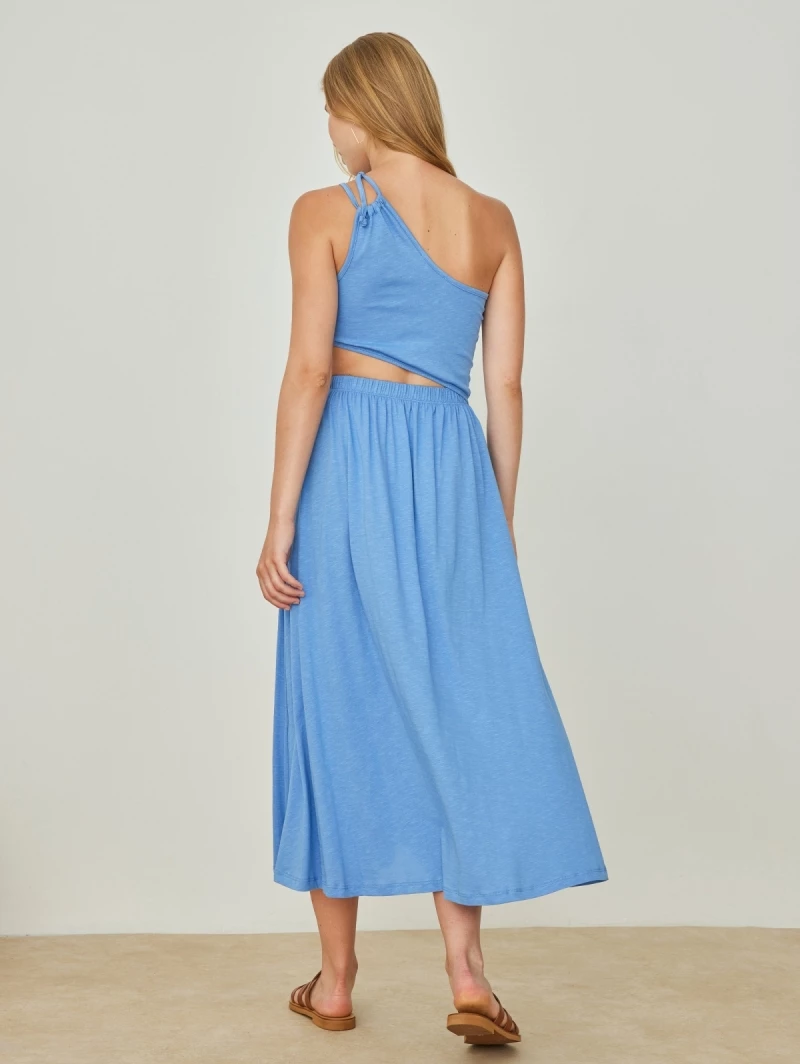 Casual μακρύ φόρεμα με cut outs. Έχει έναν ώμο. Λάστιχο στη μέση.