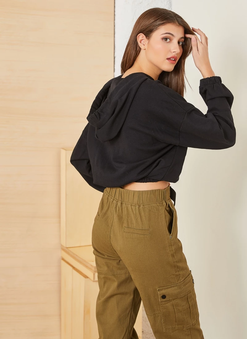 Πολύ καλή προσφορά 🔥 The Fashion Project Basic φουτεράκι με λάστιχο στο τελείωμα – Μαύρο 🥰