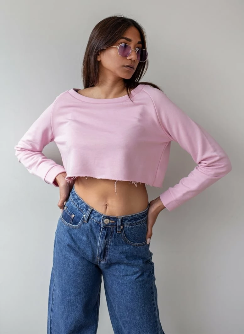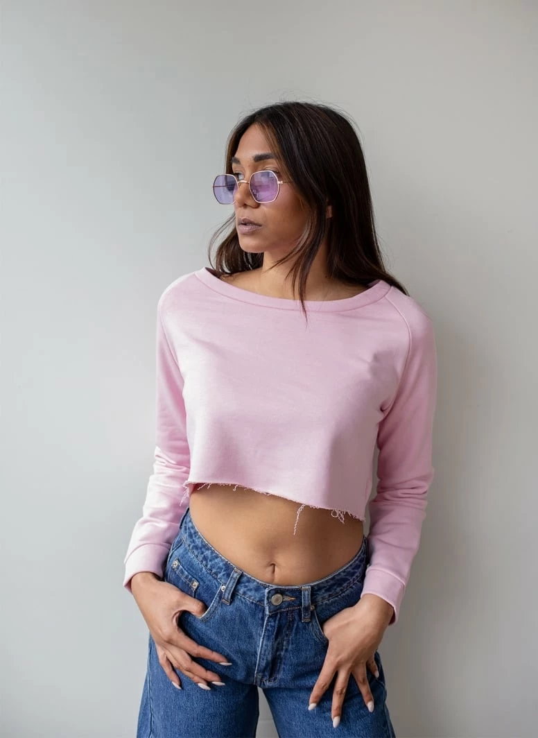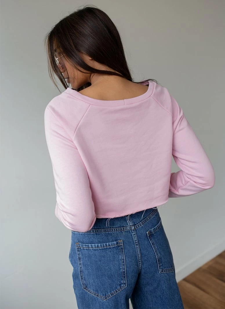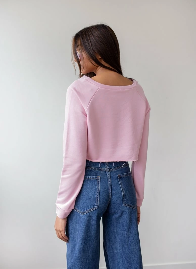 Cropped μακρυμάνικο φούτερ με ανοιχτή λαιμόκοψη.Ελληνικής ραφής.