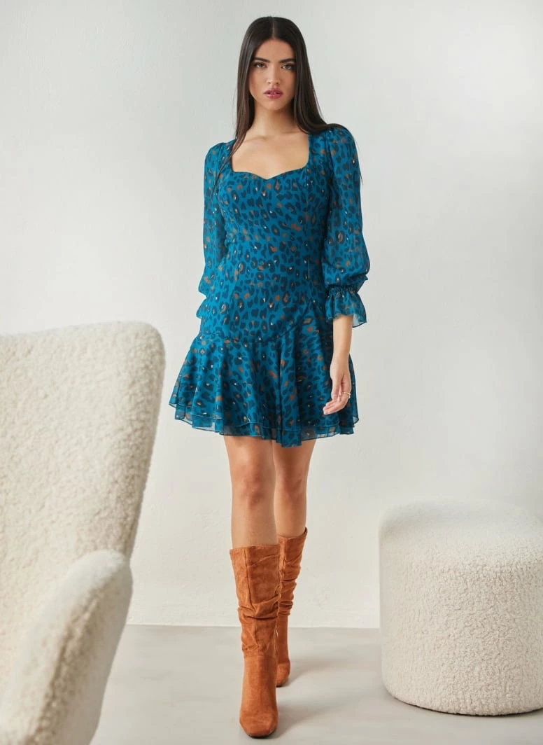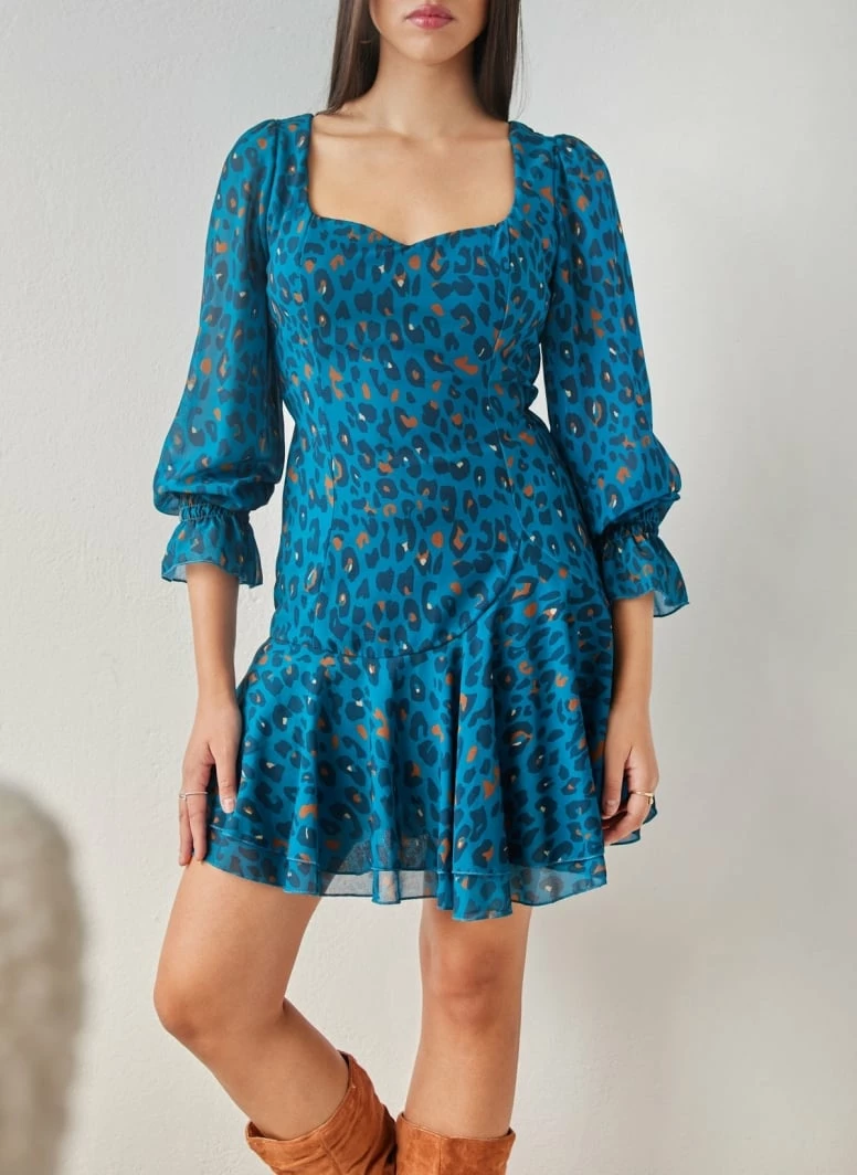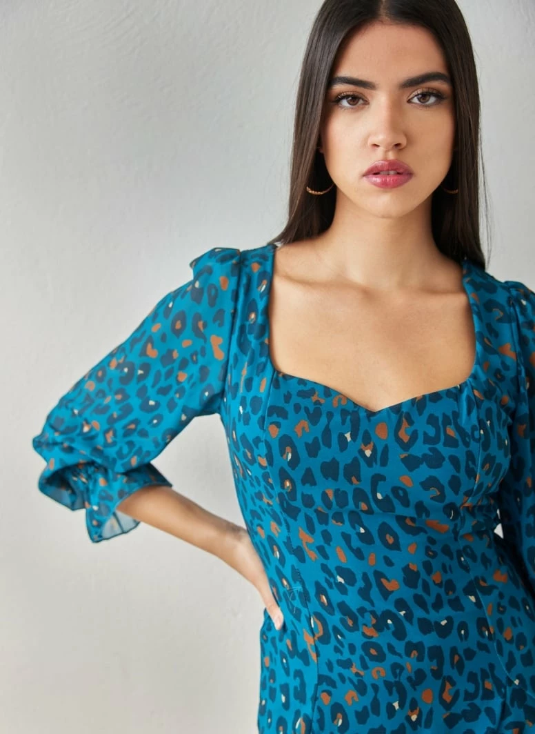 Καλύτερη πώληση ⭐ The Fashion Project Εμπριμέ φόρεμα με ανοιχτή πλάτη – Petrol 💯