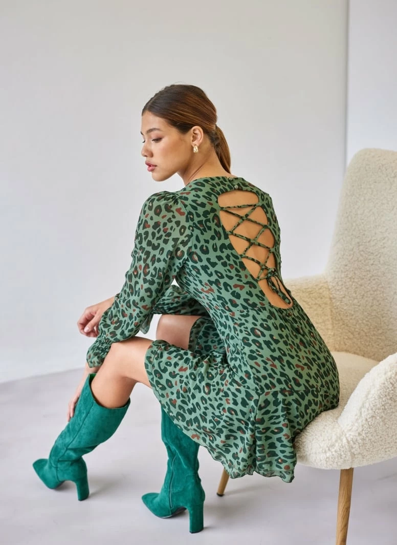 Best Pirce ⌛ The Fashion Project Εμπριμέ φόρεμα με ανοιχτή πλάτη – Πράσινο 🥰