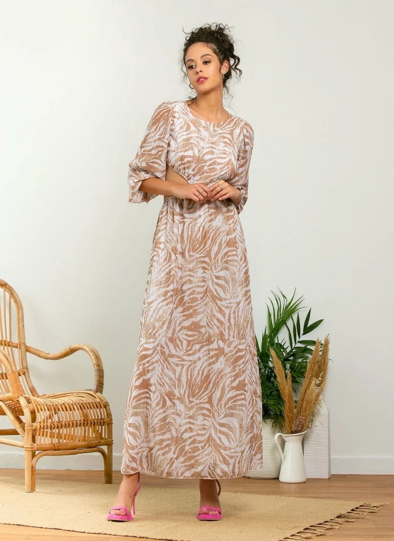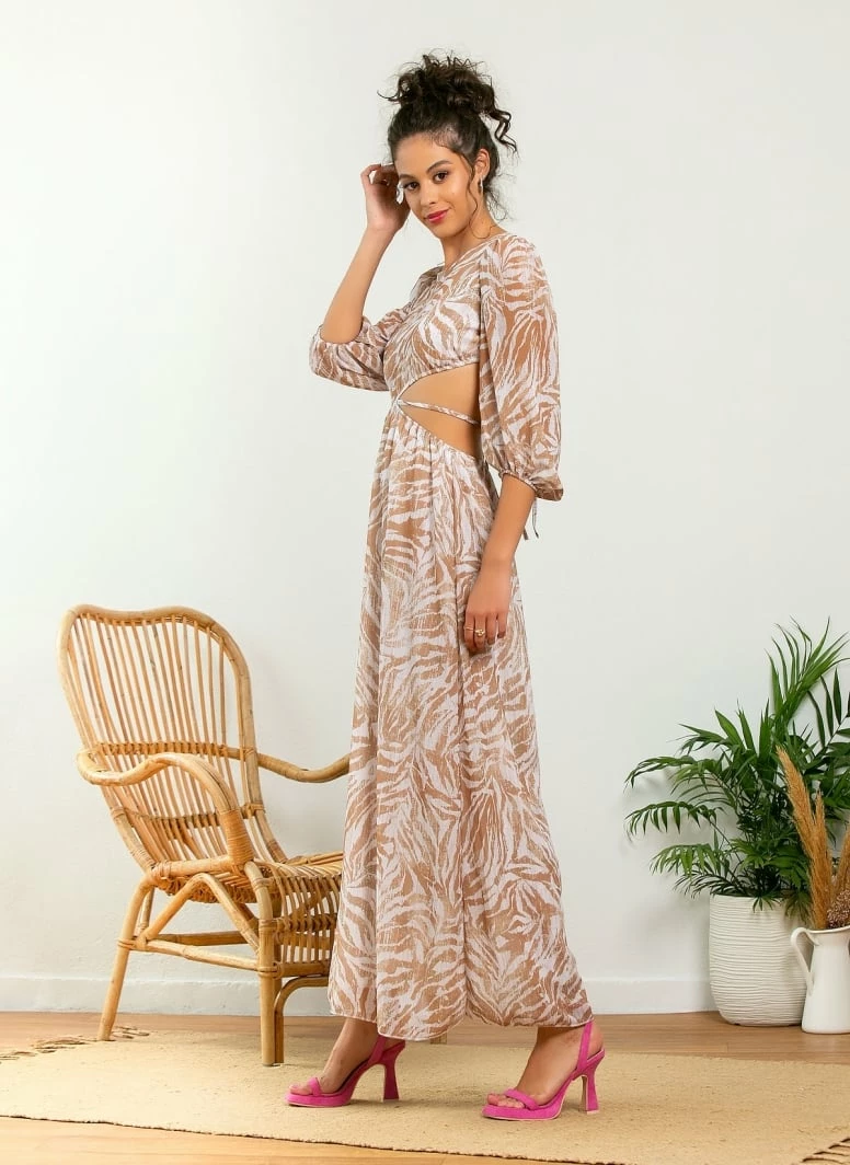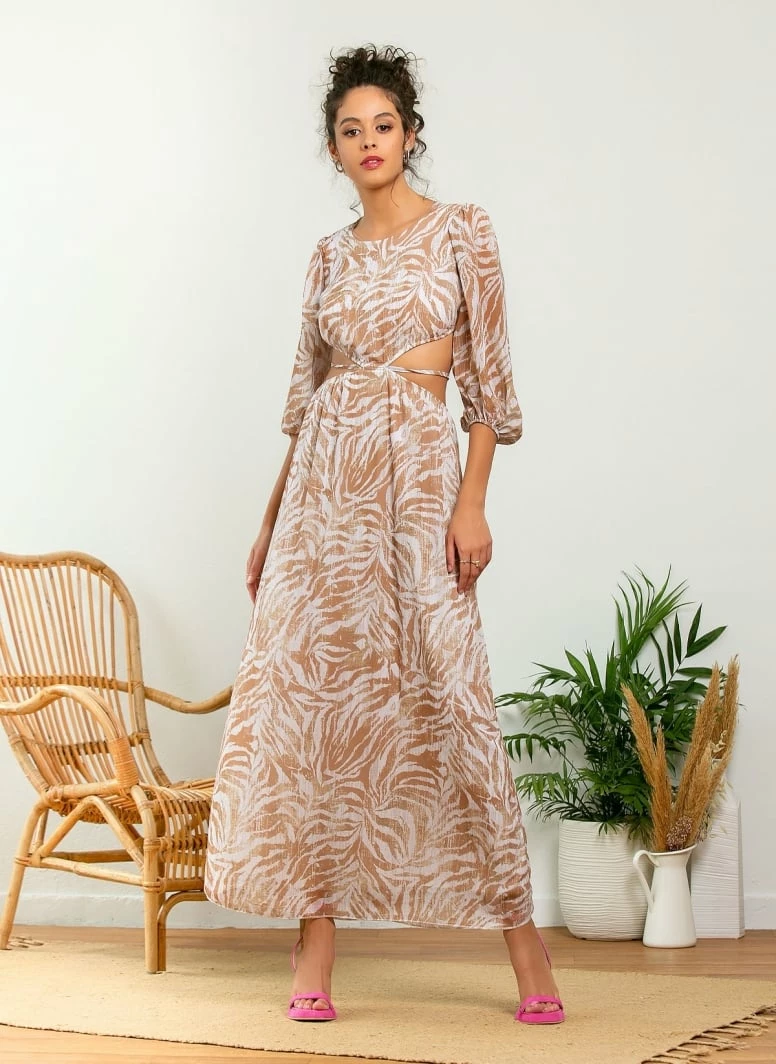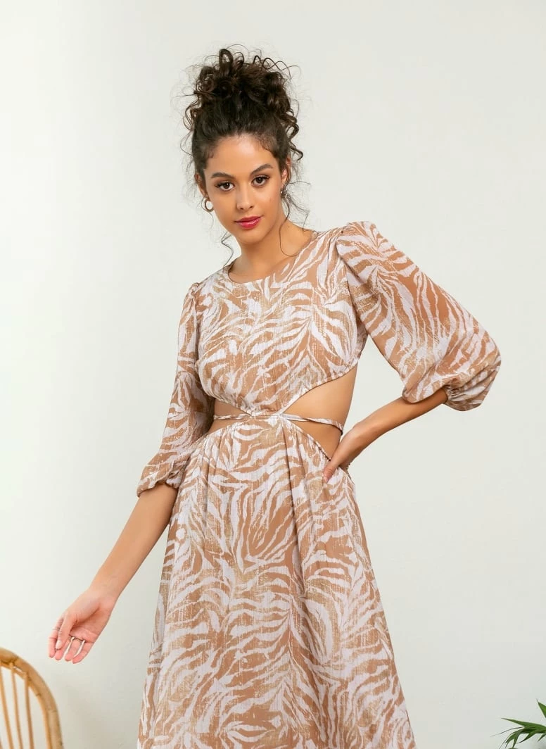 Πολύ καλή προσφορά ⌛ The Fashion Project Εμπριμέ φόρεμα με διαφάνεια – Caramel 😉