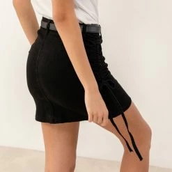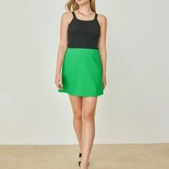 Φόρεμα πουά με ελαστικό μπούστο. Έχει ρυθμιζόμενα ραντάκια και εφέ κουμπιά στο μπροστινό μέρος.