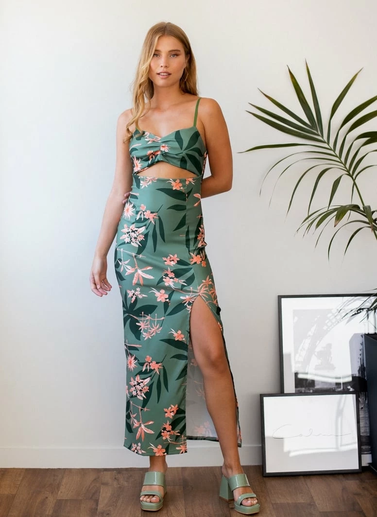 Νέος 👏 The Fashion Project Φλοράλ φόρεμα με Cut Out – Χακί 🥰
