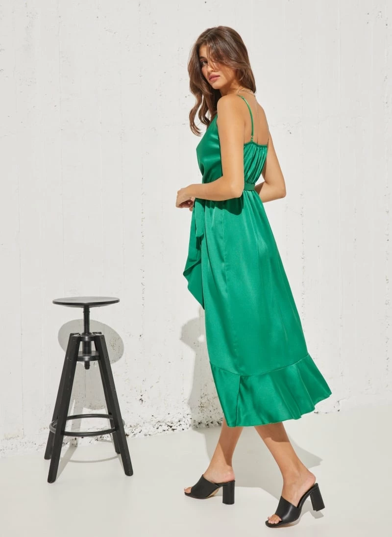 Αγορά 👏 The Fashion Project Φόρεμα ασύμμετρο σατέν με βολάν – Πράσινο ❤️