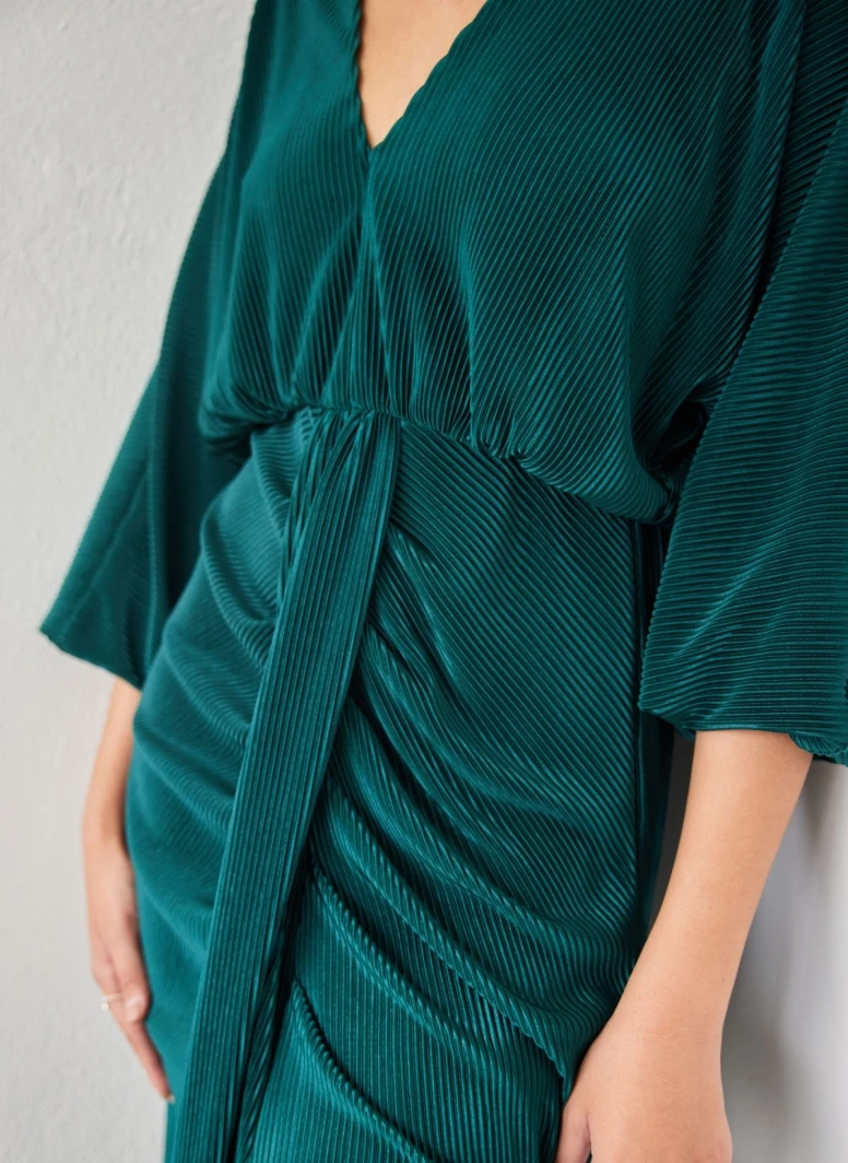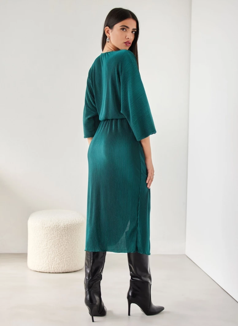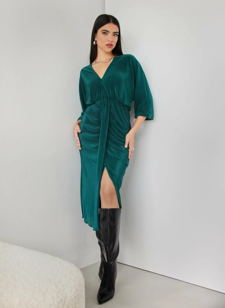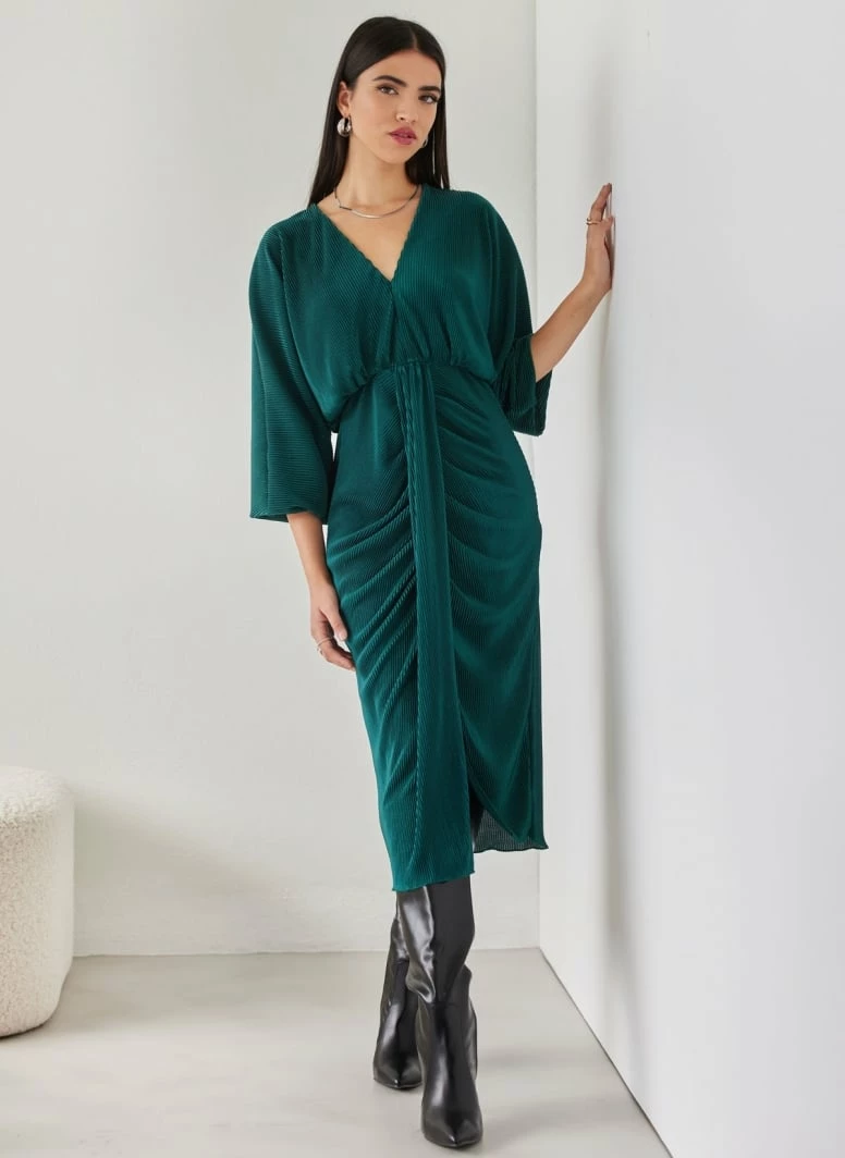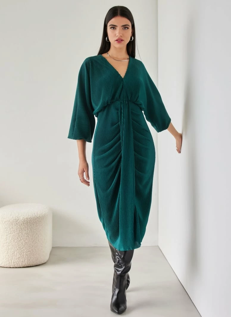 Φτηνός 🧨 The Fashion Project Φόρεμα γκοφρέ με σούρες – Κυπαρισσί 🤩