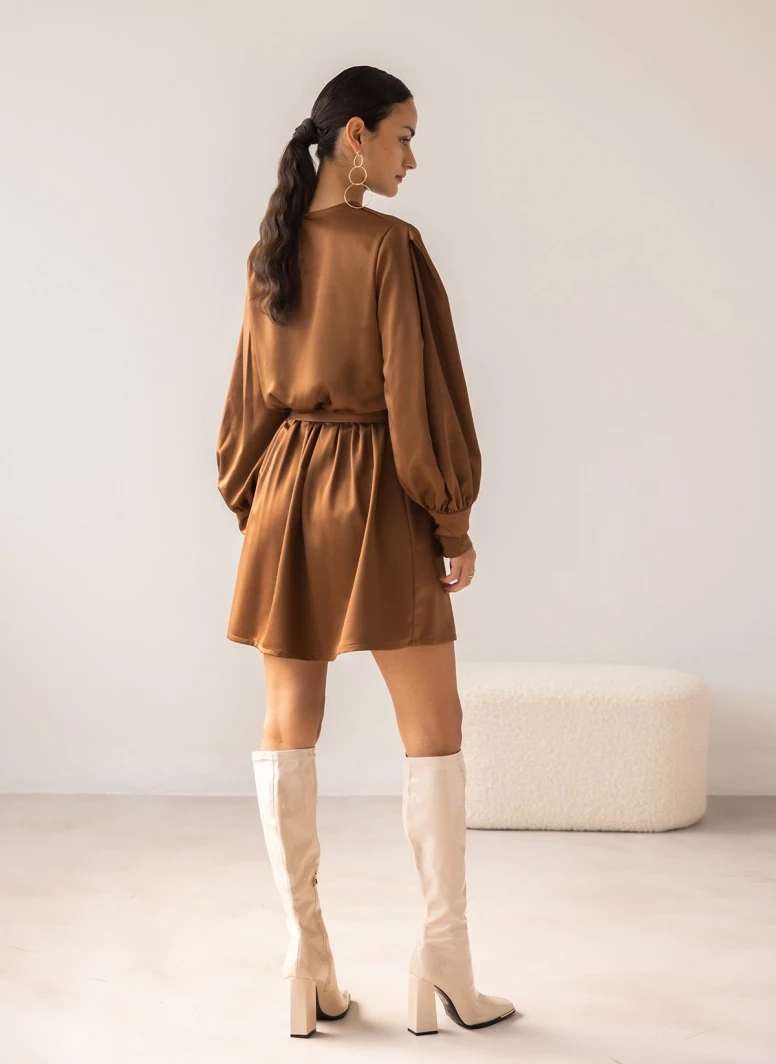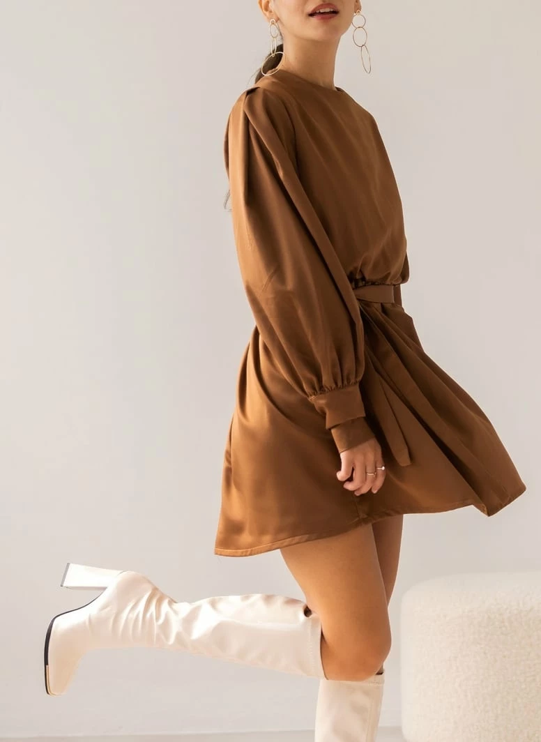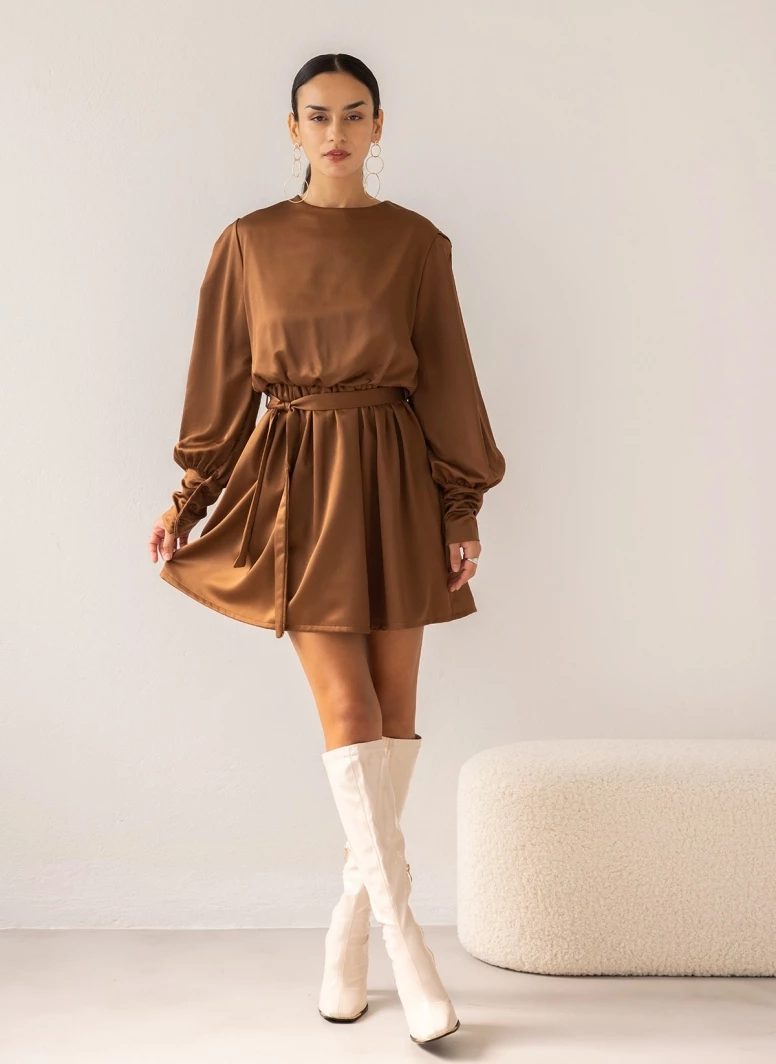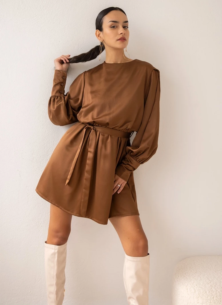 Η καλύτερη συμφωνία 😍 The Fashion Project Φόρεμα κοντό με Balloon μανίκια – Καφέ 🔔