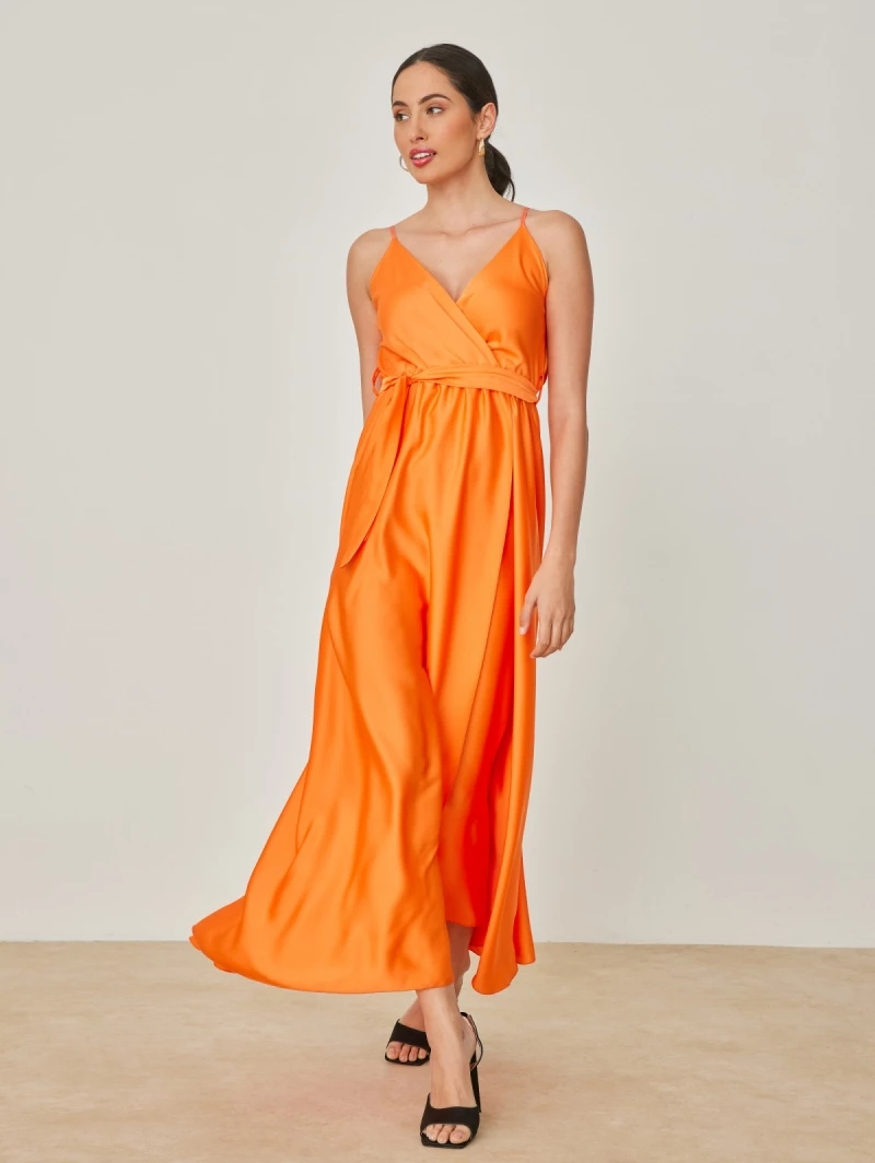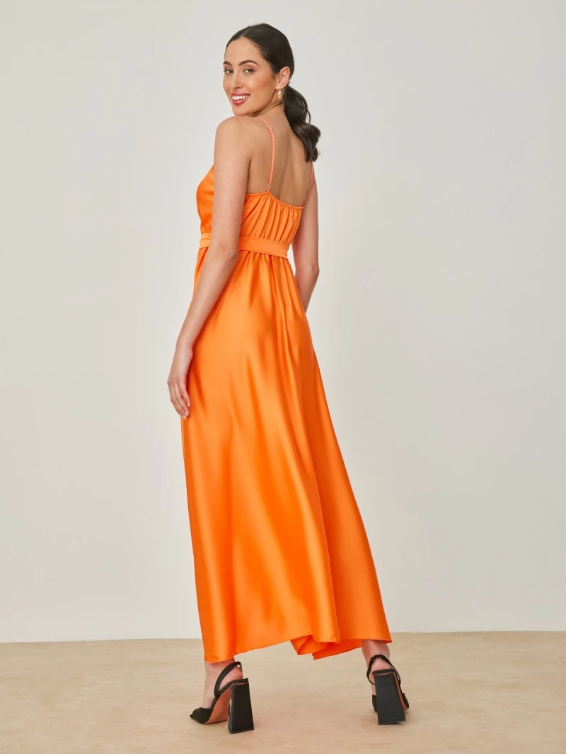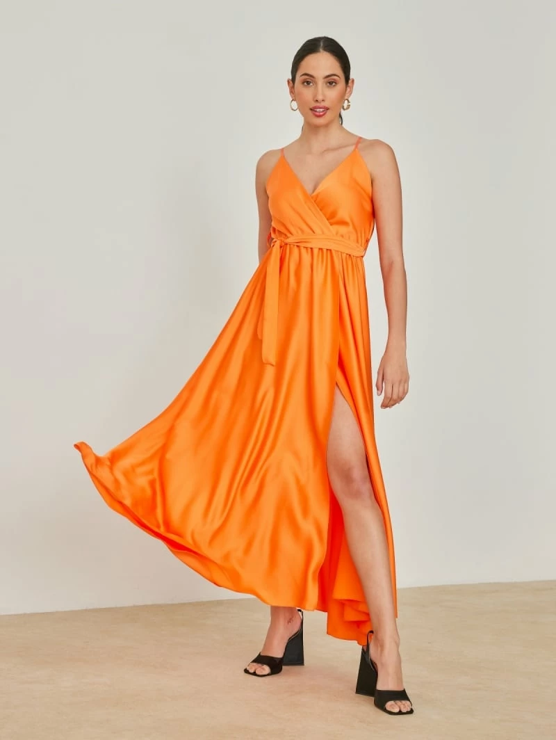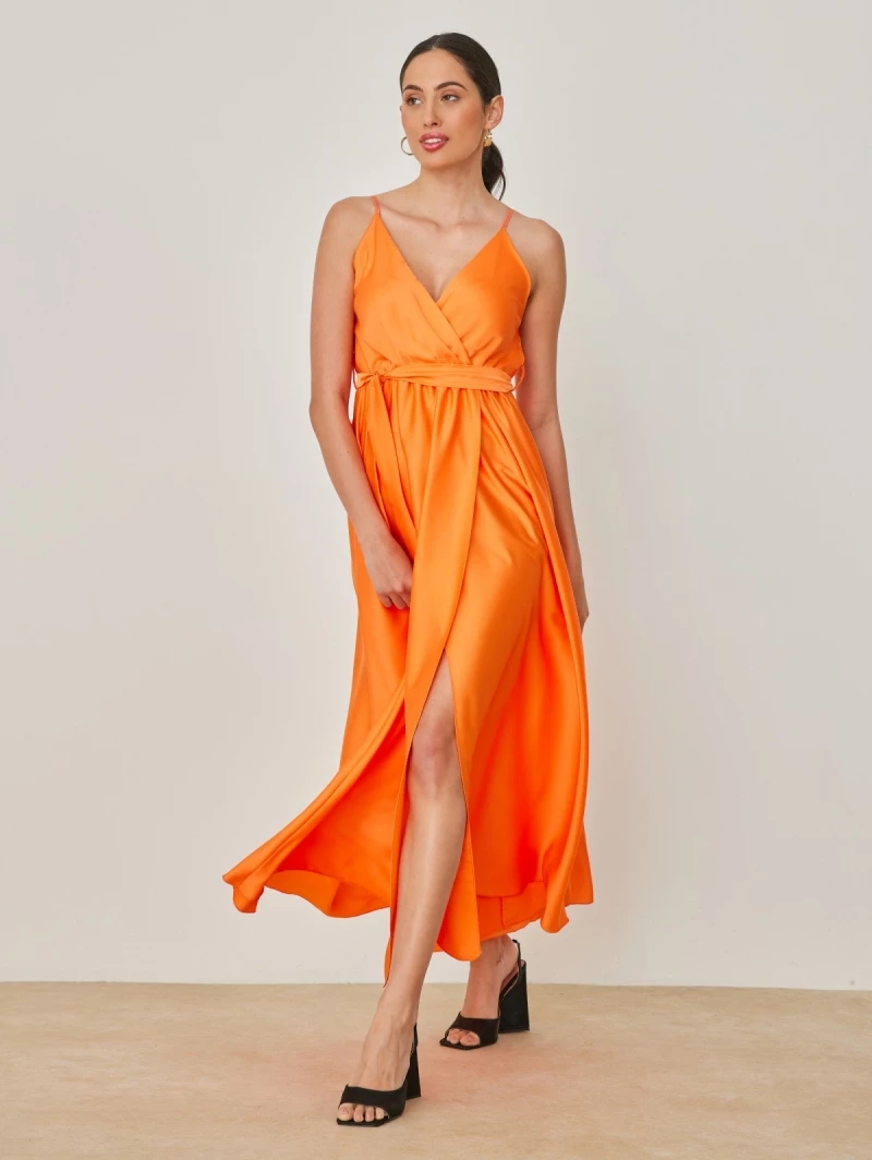 Καλύτερη πώληση 🔔 The Fashion Project Φόρεμα μακρύ σατέν με άνοιγμα – Πορτοκαλί 🤩