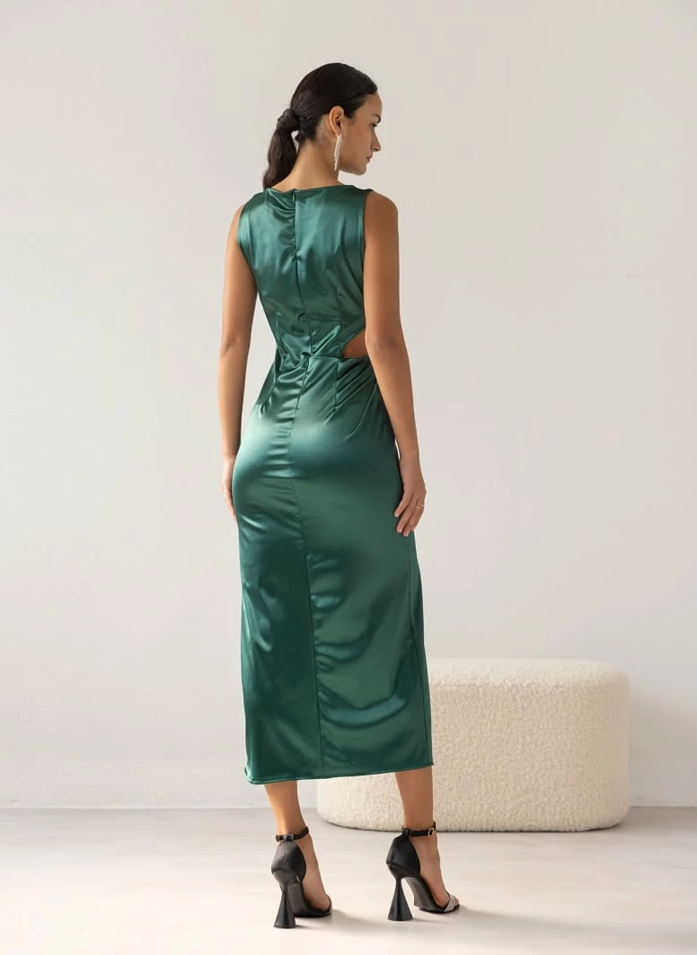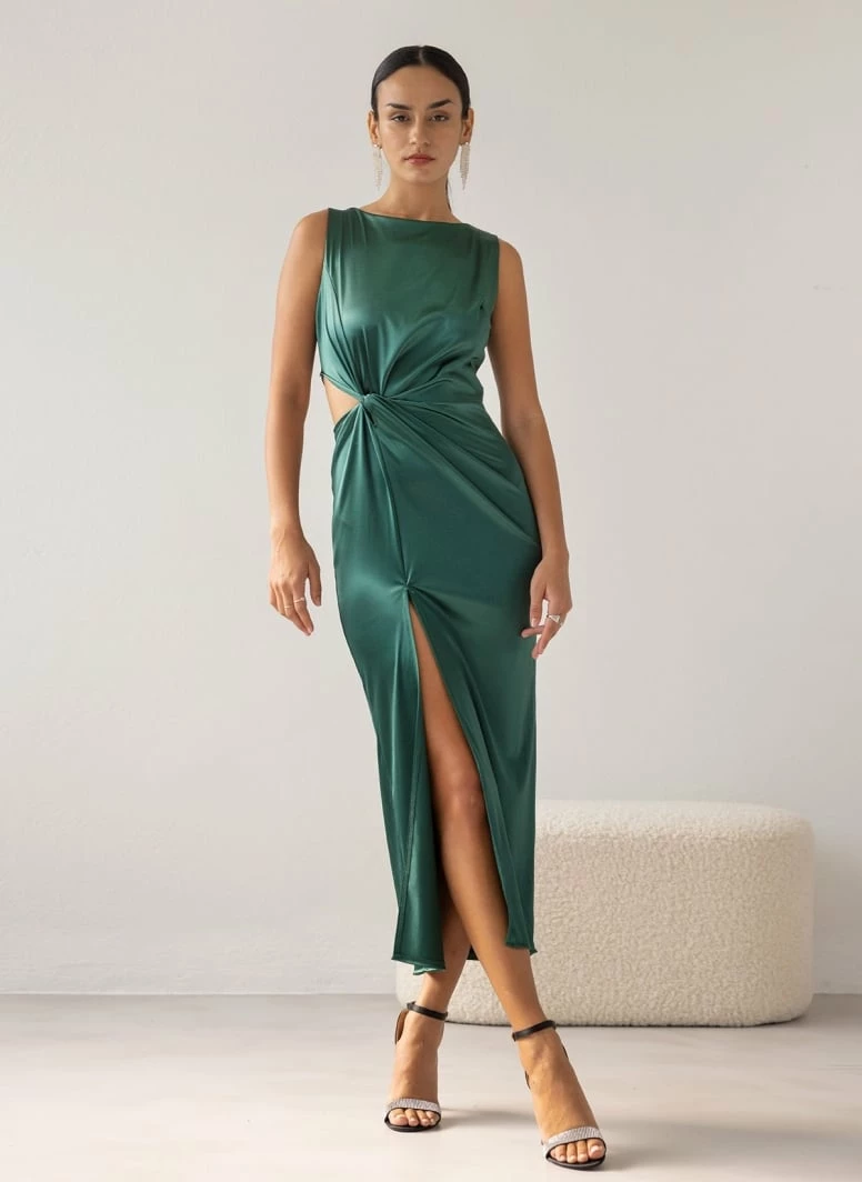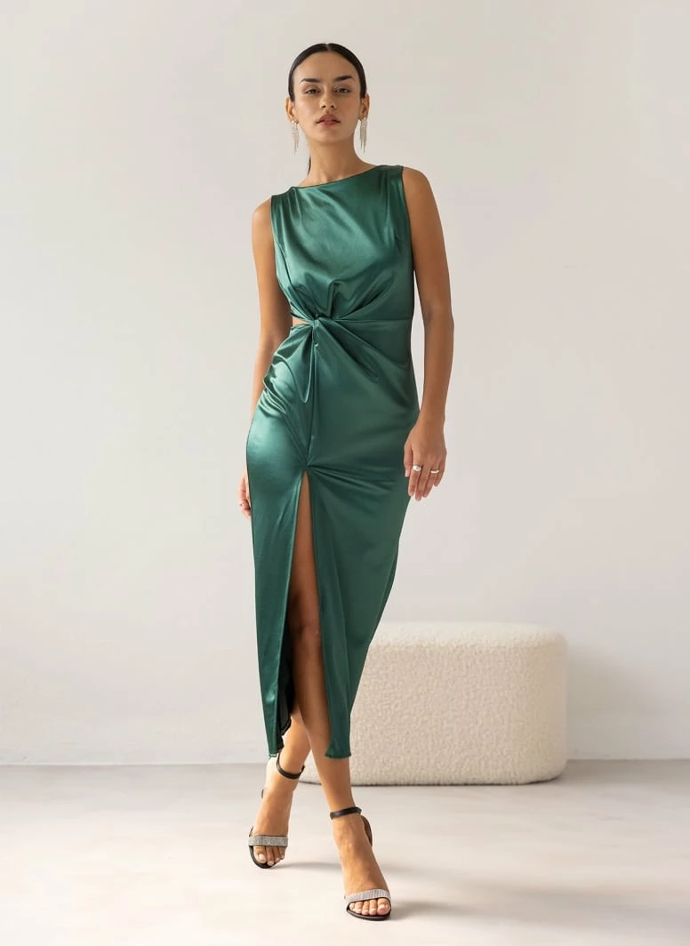 Συμφωνίες 🧨 The Fashion Project Φόρεμα μάξι σατέν με άνοιγμα – Κυπαρισσί 👍