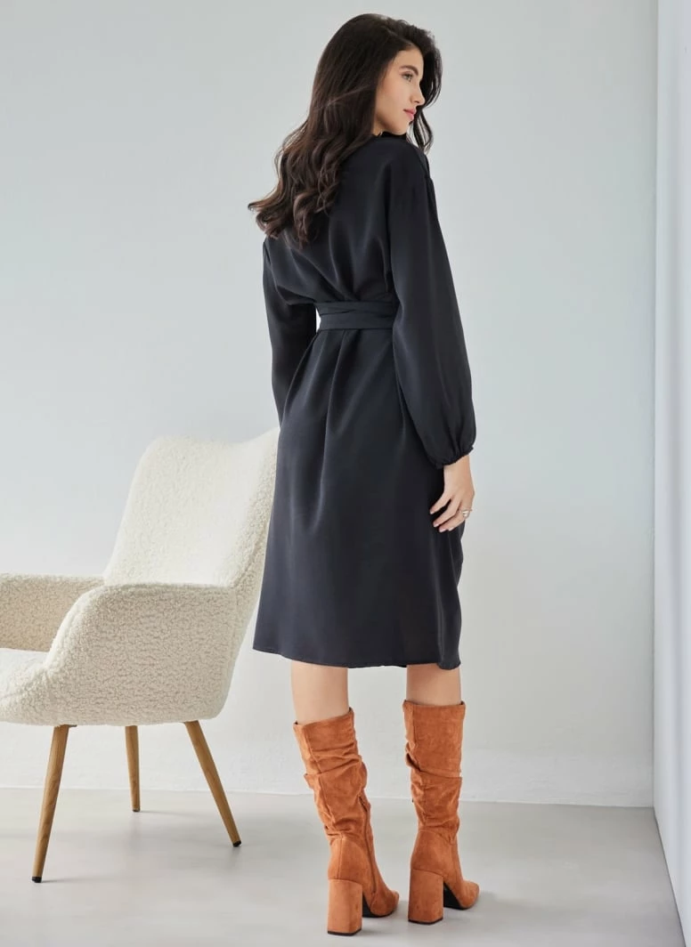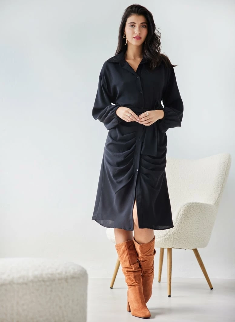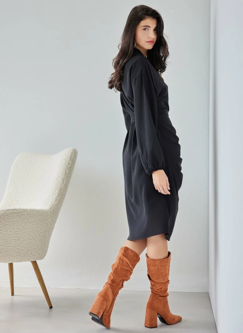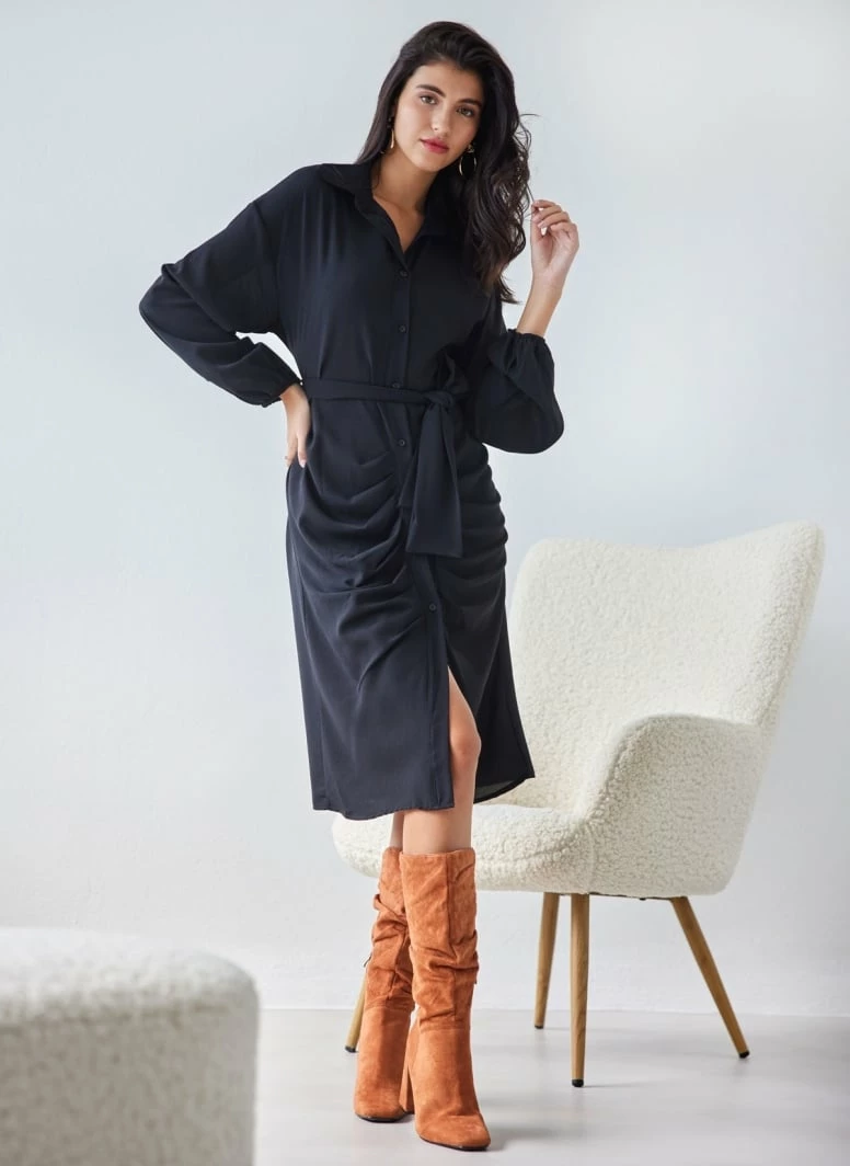 Best Pirce 🔔 The Fashion Project Φόρεμα με δέσιμο και σούρες – Μαύρο 🔥