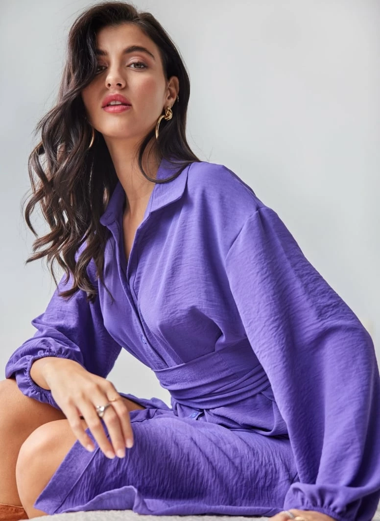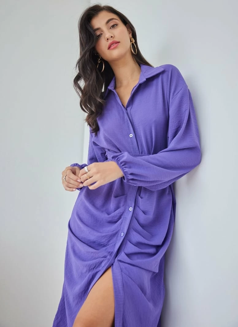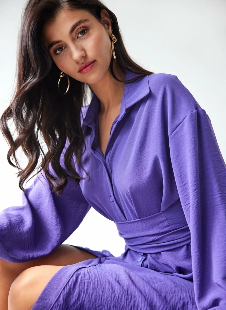 Εξοδος 😉 The Fashion Project Φόρεμα με δέσιμο και σούρες – Μωβ 👏