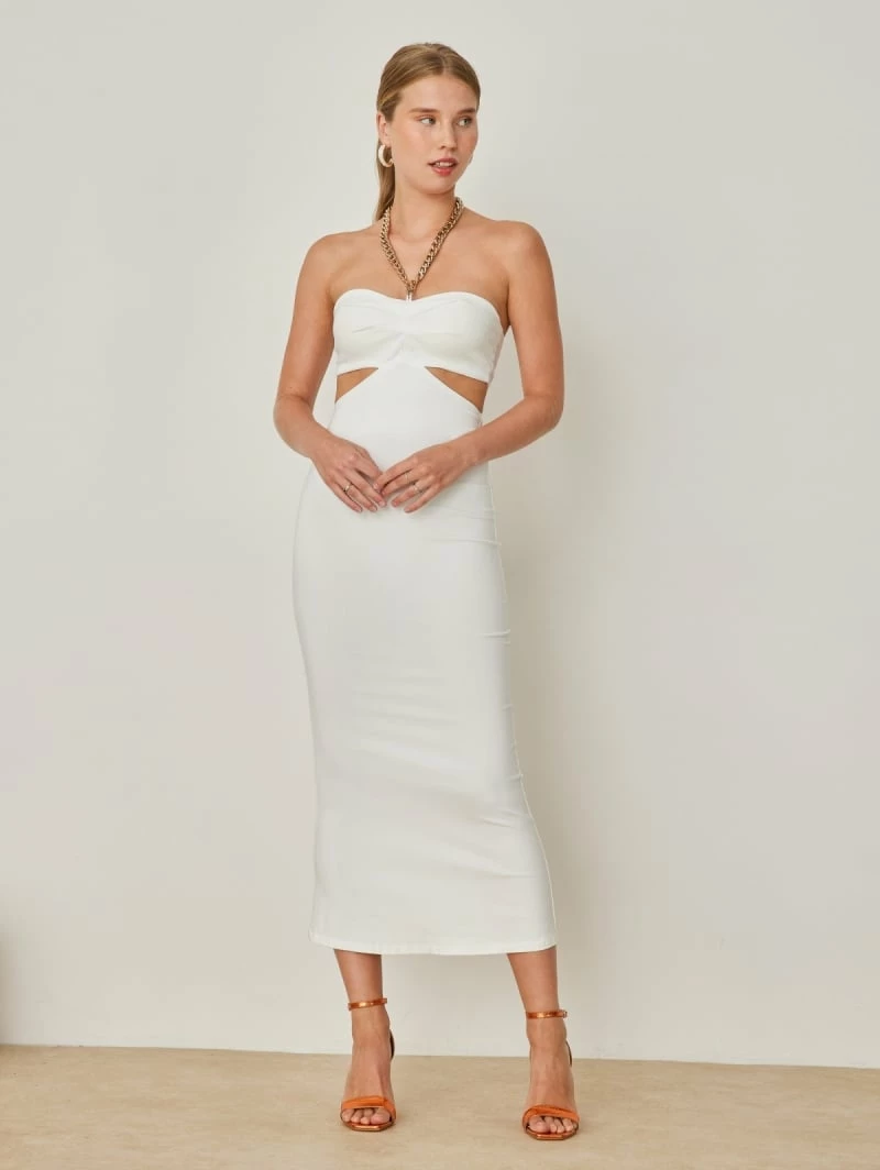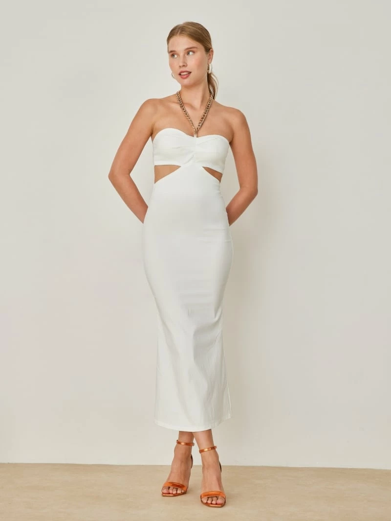 Κουπόνι 😀 The Fashion Project Φόρεμα Midi εφαρμοστό με Cut Outs – Λευκό ❤️