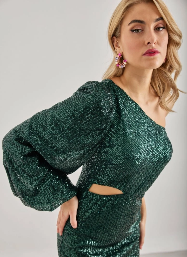 Εξοδος ⌛ The Fashion Project Φόρεμα μίνι με παγιέτες και ένα μανίκι – Κυπαρισσί 🔥