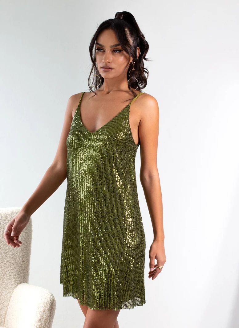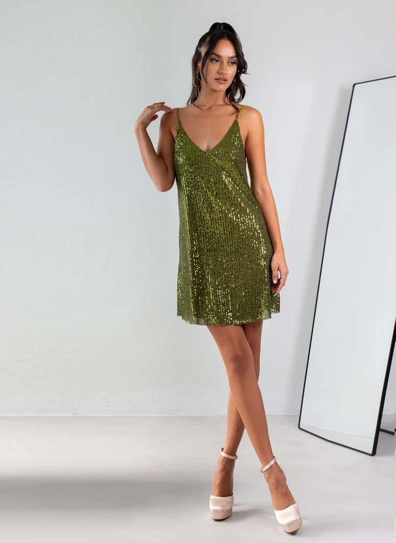 Καλύτερες κριτικές για 👍 The Fashion Project Φόρεμα μίνι με παγιέτες – Πράσινο ✔️