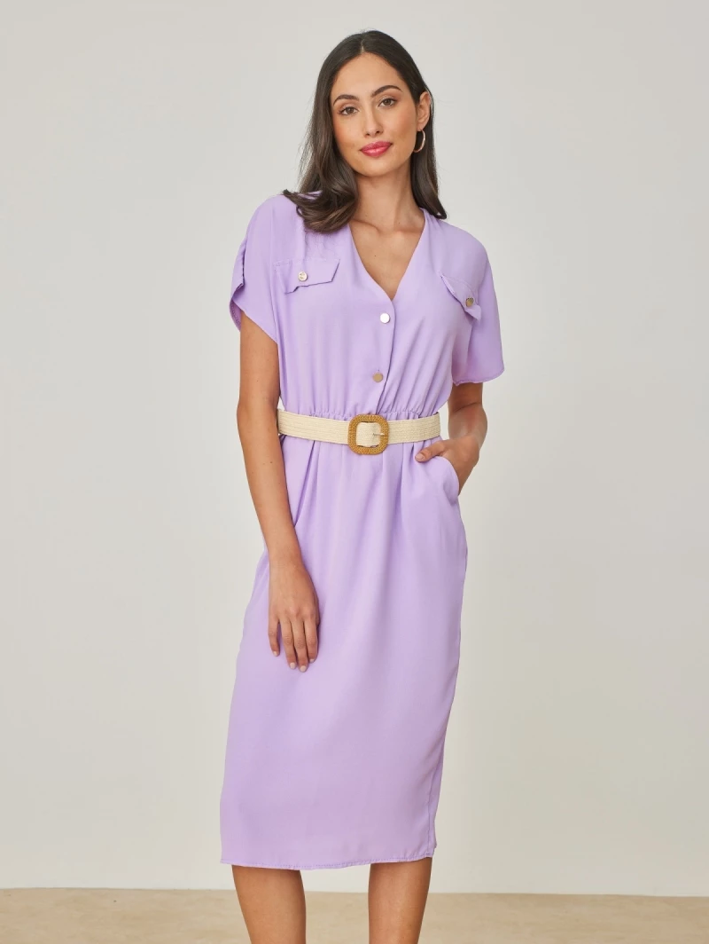 Προώθηση 👏 The Fashion Project Φόρεμα μίντι με πλεκτή ζώνη – Λιλά ⭐