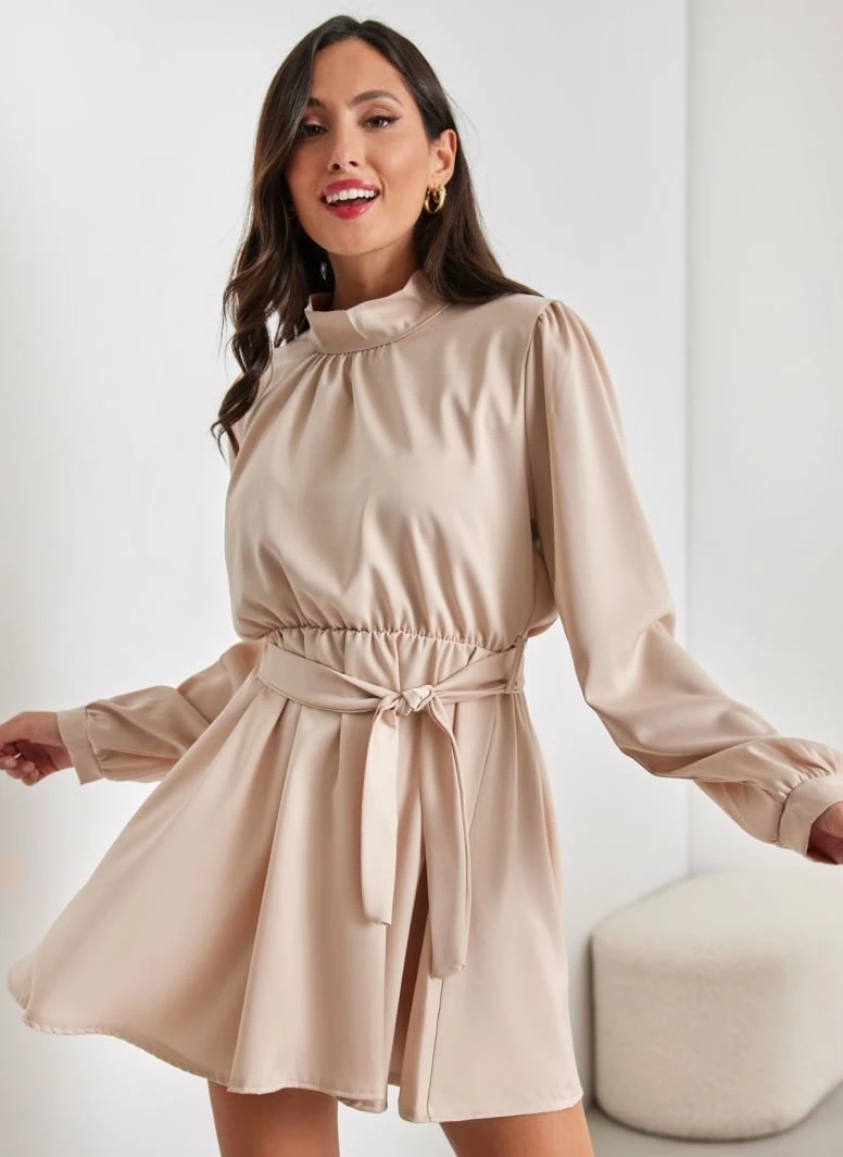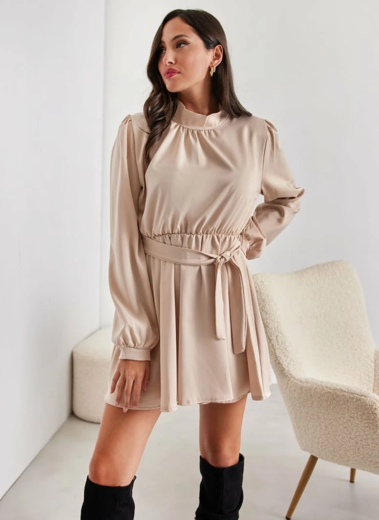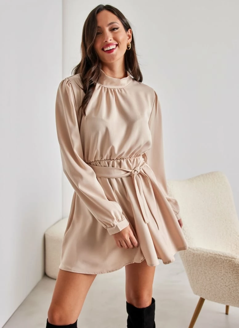 Flash Sale ✔️ The Fashion Project Φόρεμα σατέν με ψηλή λαιμόκοψη – Άμμου 😀