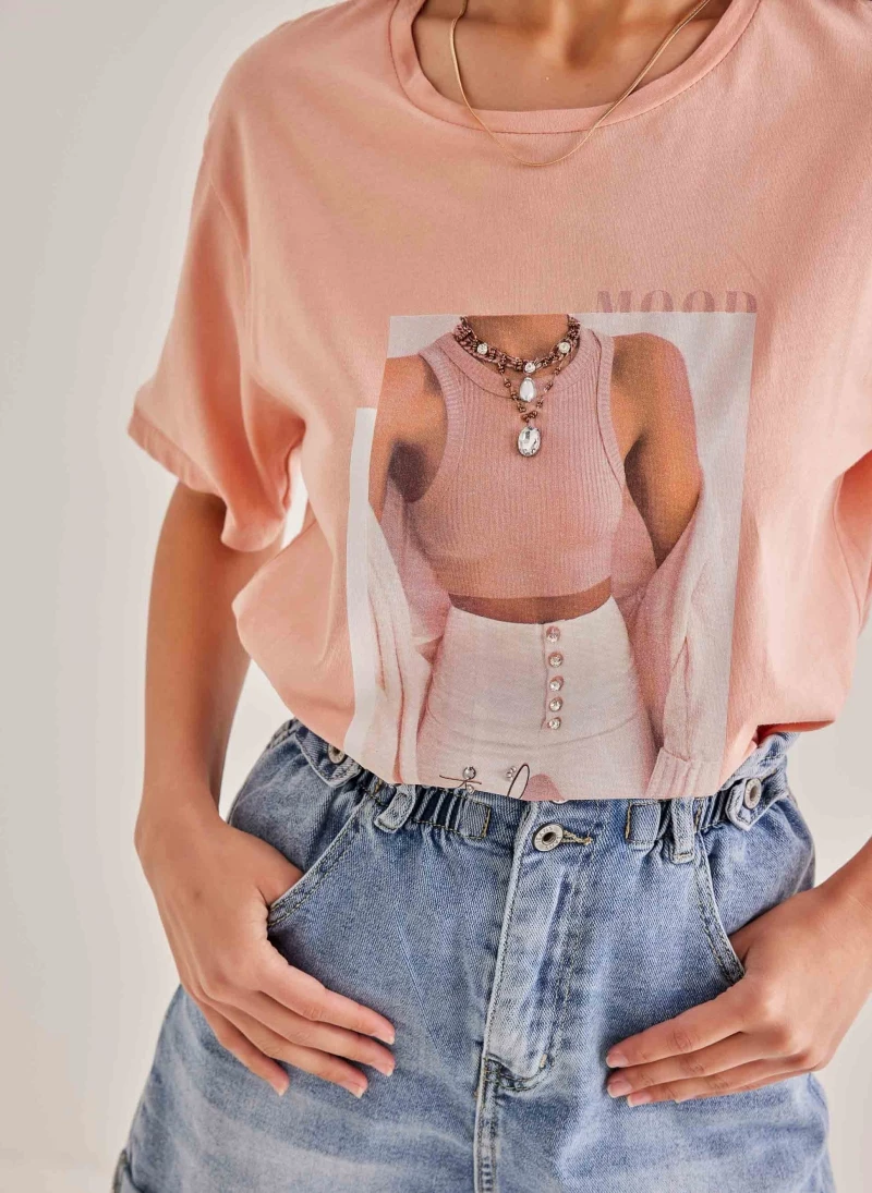 Best Pirce 😍 The Fashion Project Κοντομάνικη μπλούζα με πέτρες – Ροδακινί 🥰