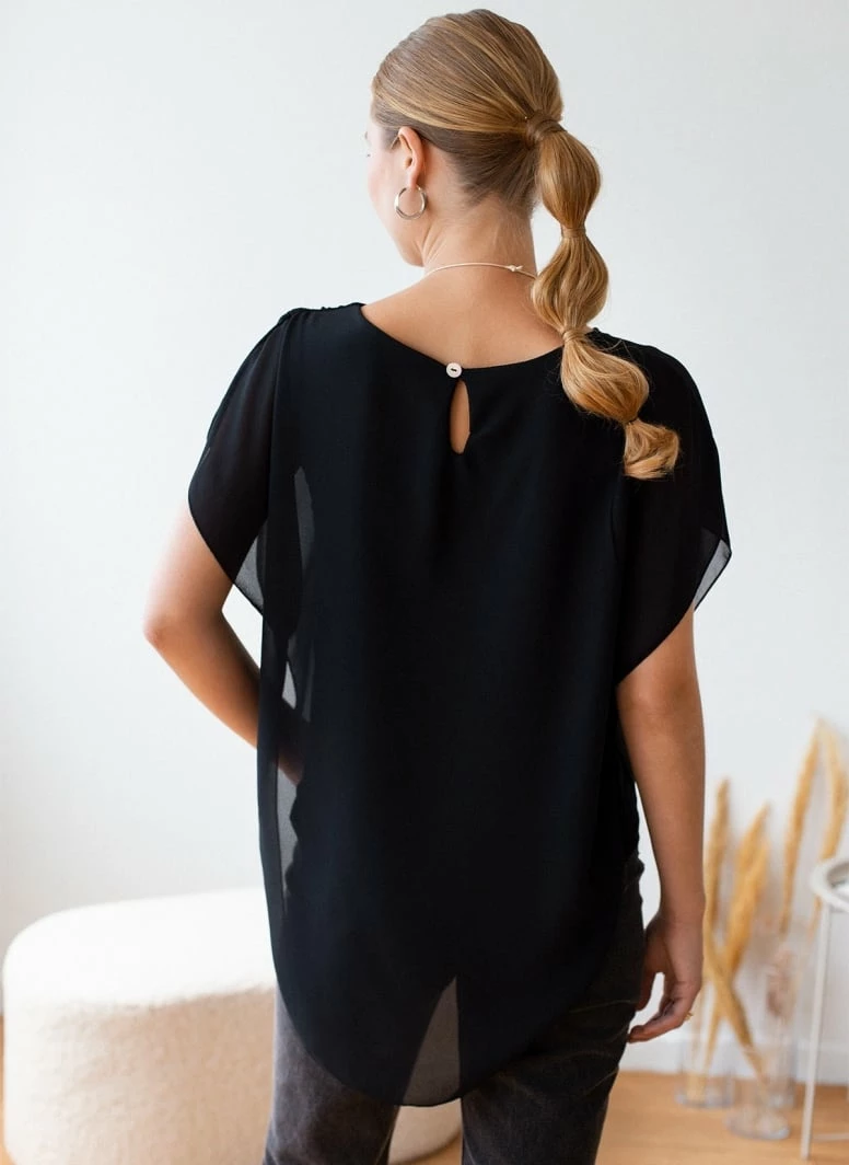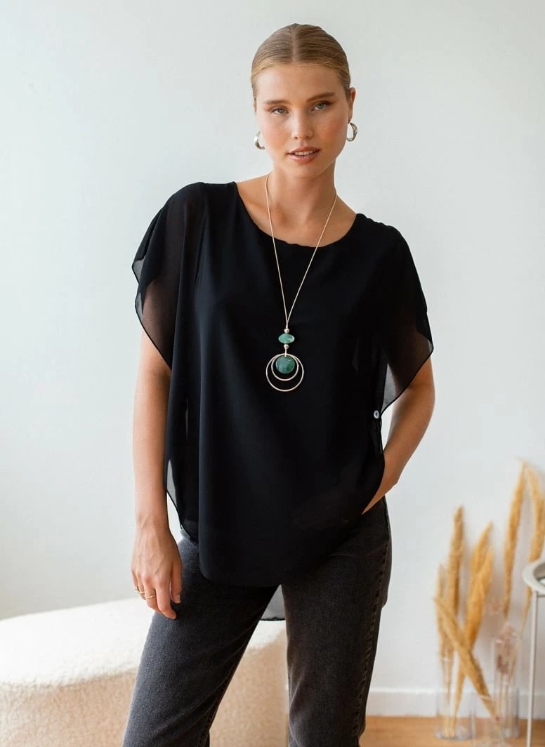 Εξοδος 🎉 The Fashion Project Μπλούζα διαφάνεια με κολιέ – Μαύρο 🛒