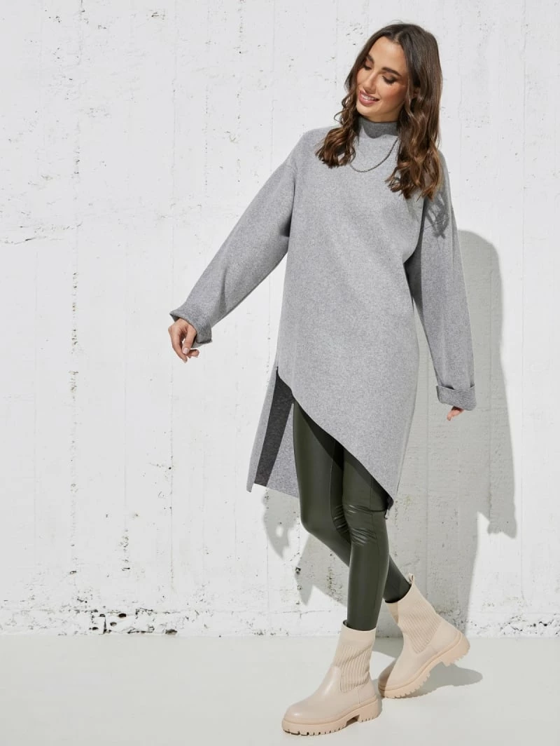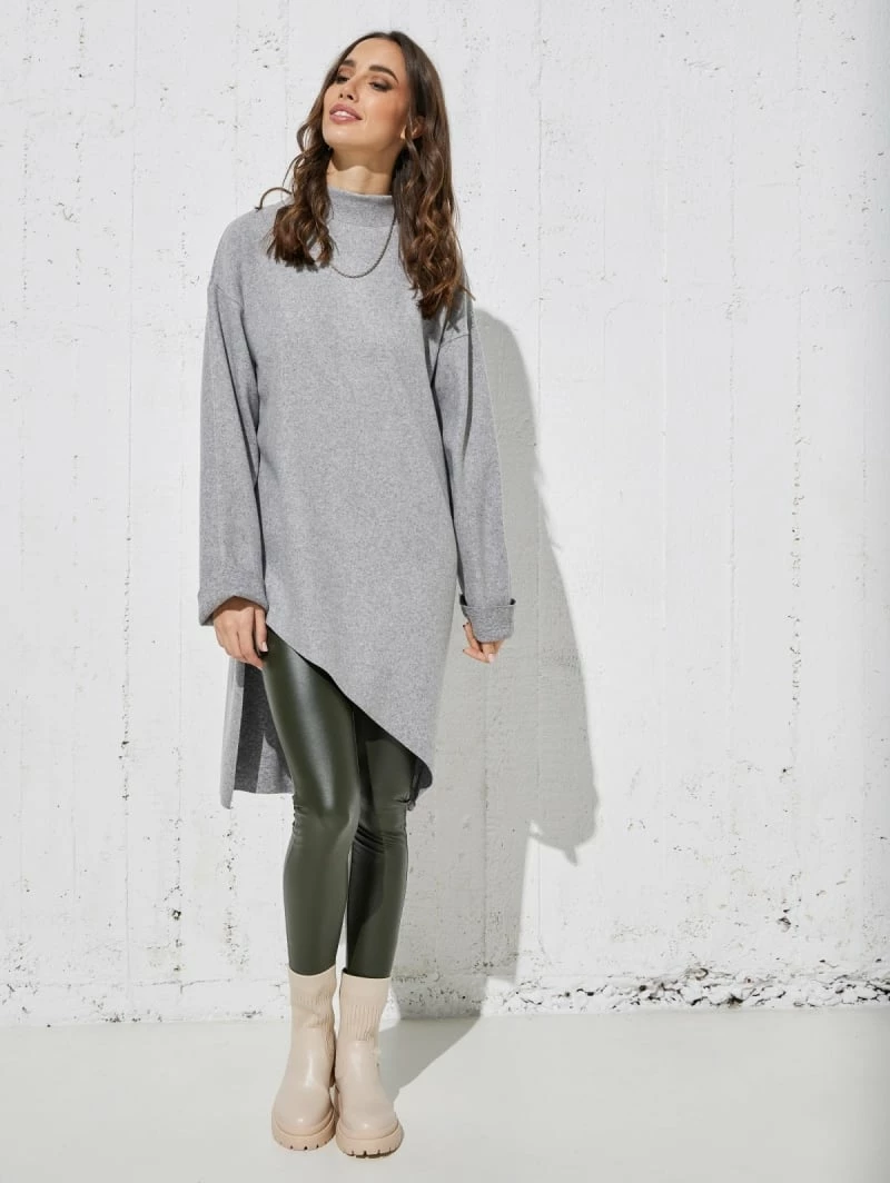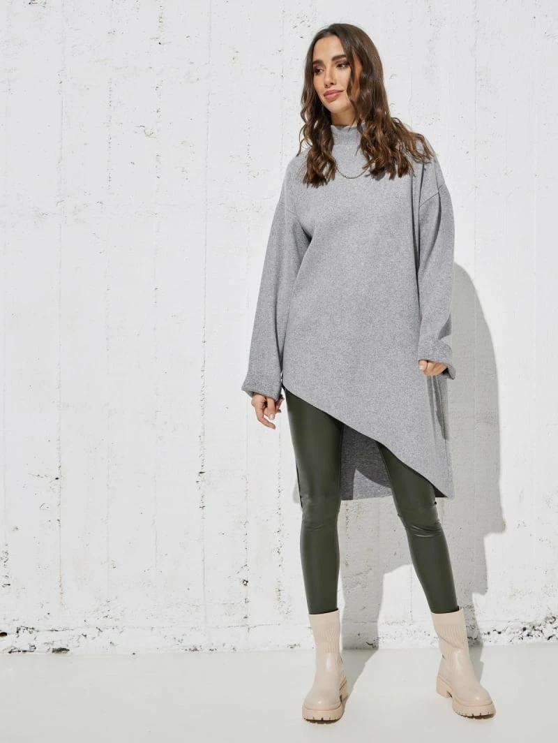 Εξοδος 💯 The Fashion Project Μπλούζα μακριά με ψηλό γιακά – Γκρι ⌛