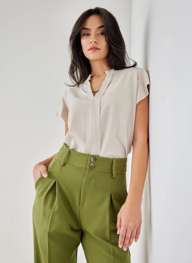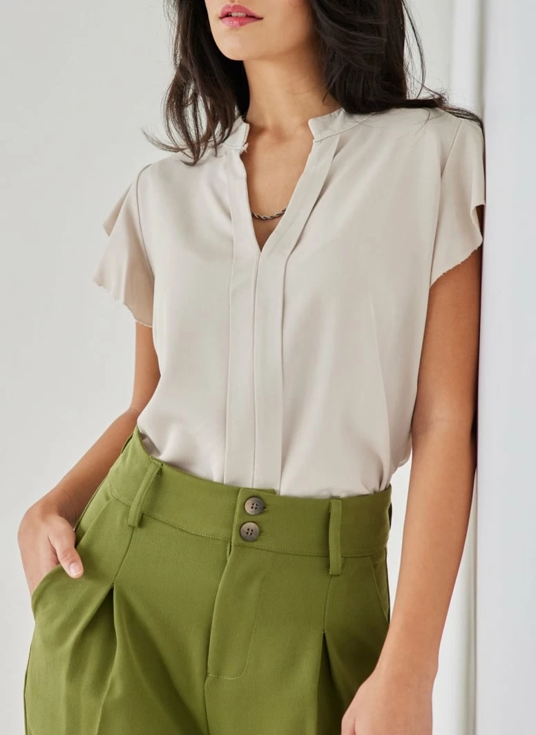 Μπλούζα με μάο γιακά. Έχει V λαιμόκοψη.