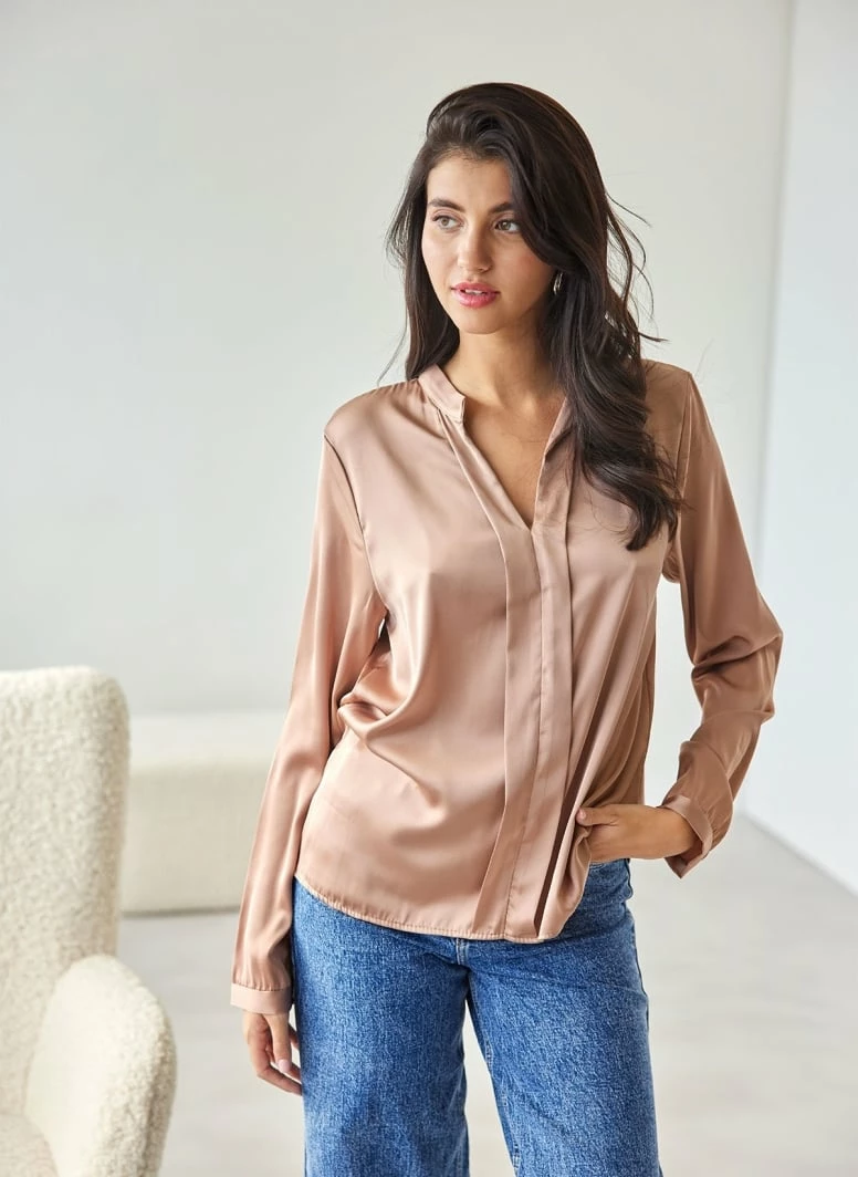Καλύτερες κριτικές για 😀 The Fashion Project Μπλούζα σατέν με μάο γιακά – Biscuit 🥰