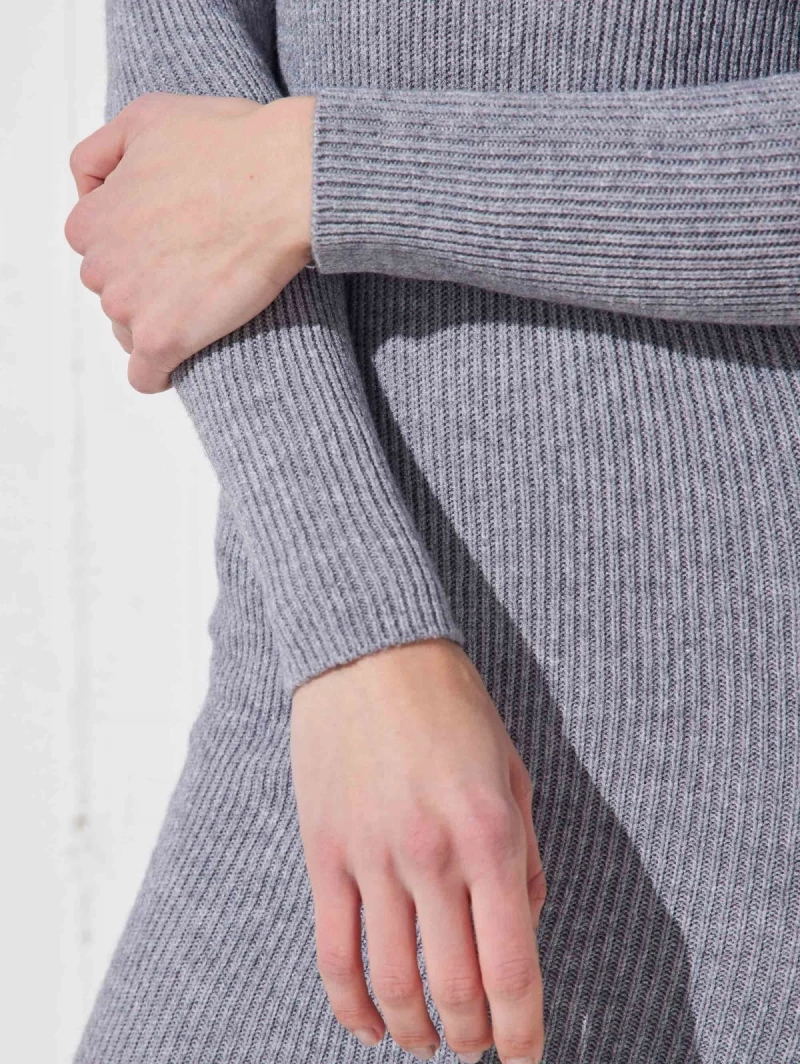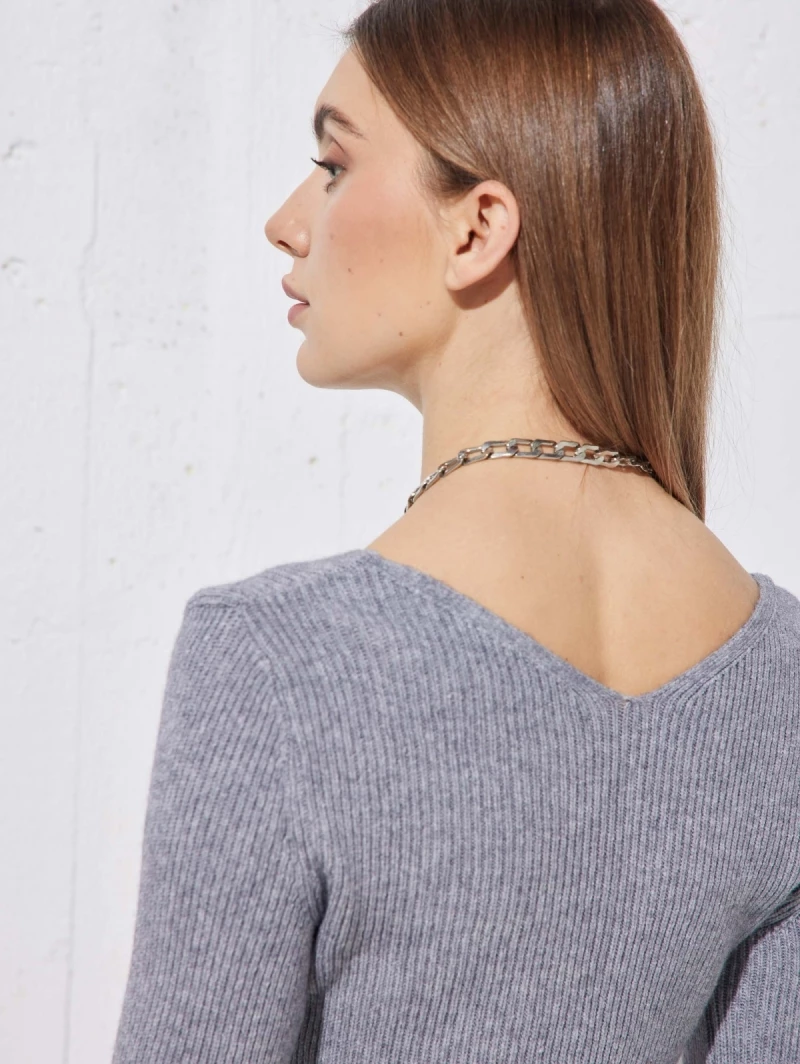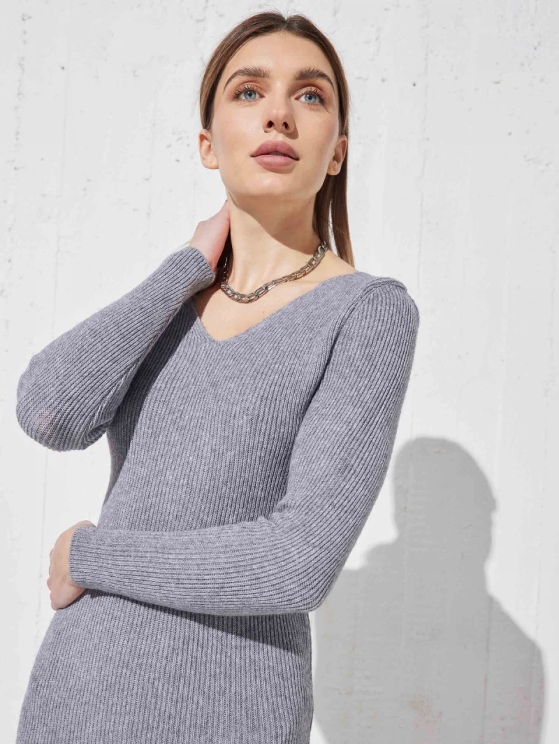Πολύ καλή προσφορά 👍 The Fashion Project Πλεκτό φόρεμα με ανοιχτή λαιμόκοψη – Γκρι ✔️