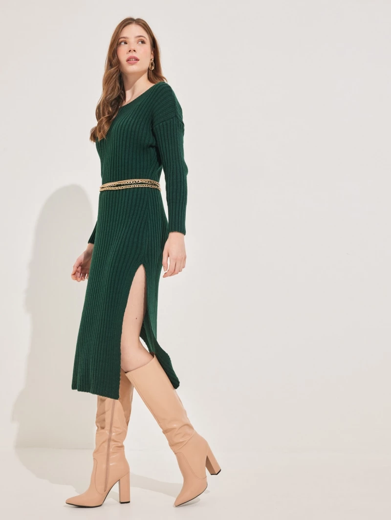 Εκπτωση 😍 The Fashion Project Πλεκτό φόρεμα με ανοίγματα – Κυπαρισσί 🔔