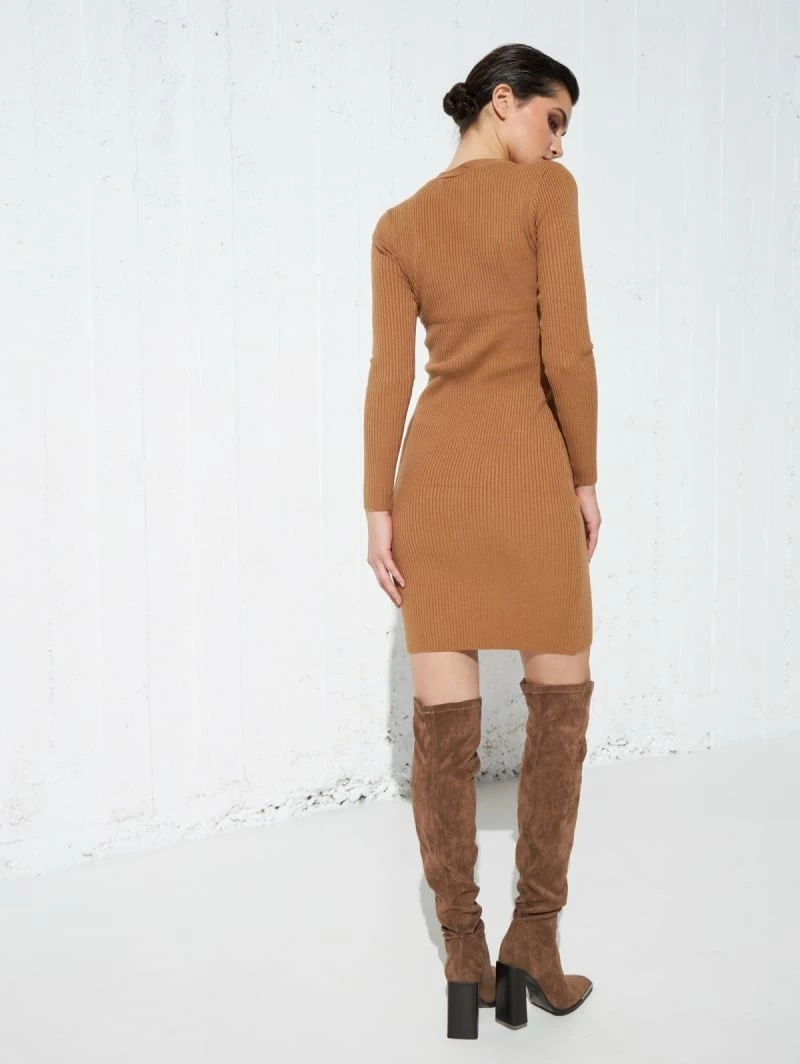 Συμφωνίες 🎁 The Fashion Project Πλεκτό φόρεμα με χρυσά κουμπιά – Caramel 👍
