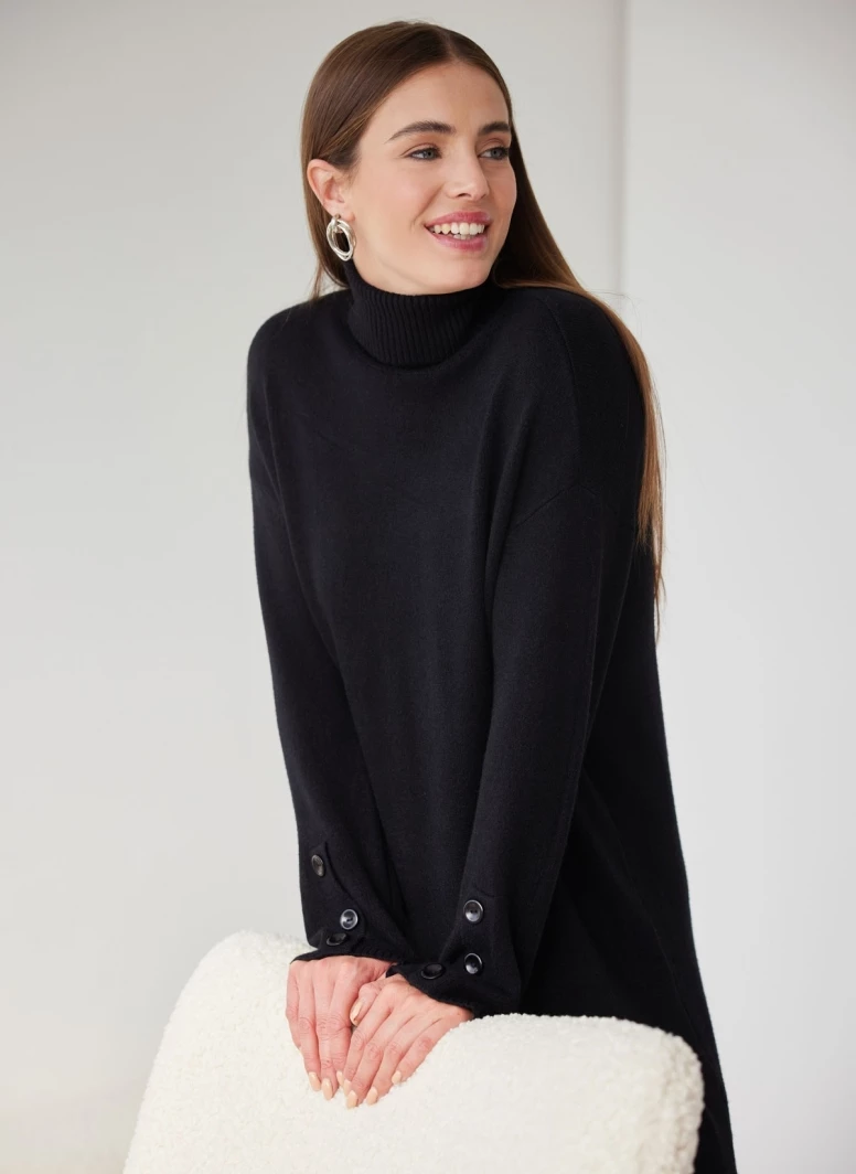 Best Pirce 👍 The Fashion Project Πλεκτό φόρεμα με κουμπιά στα μανίκια – Μαύρο 😀