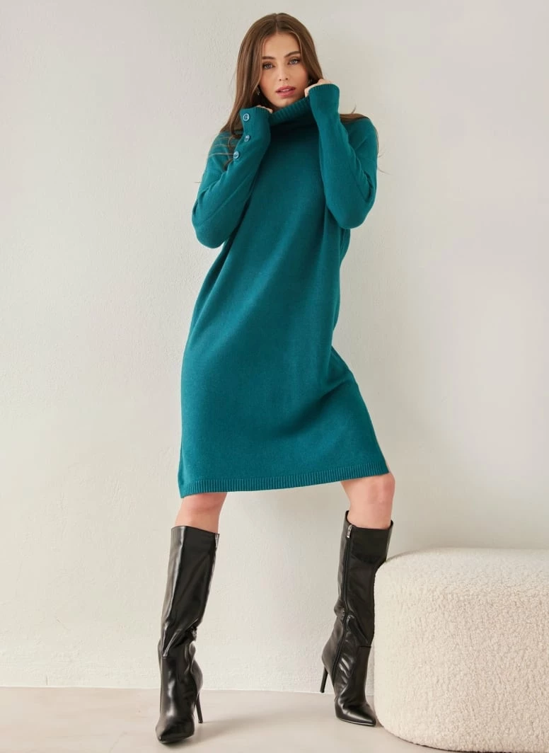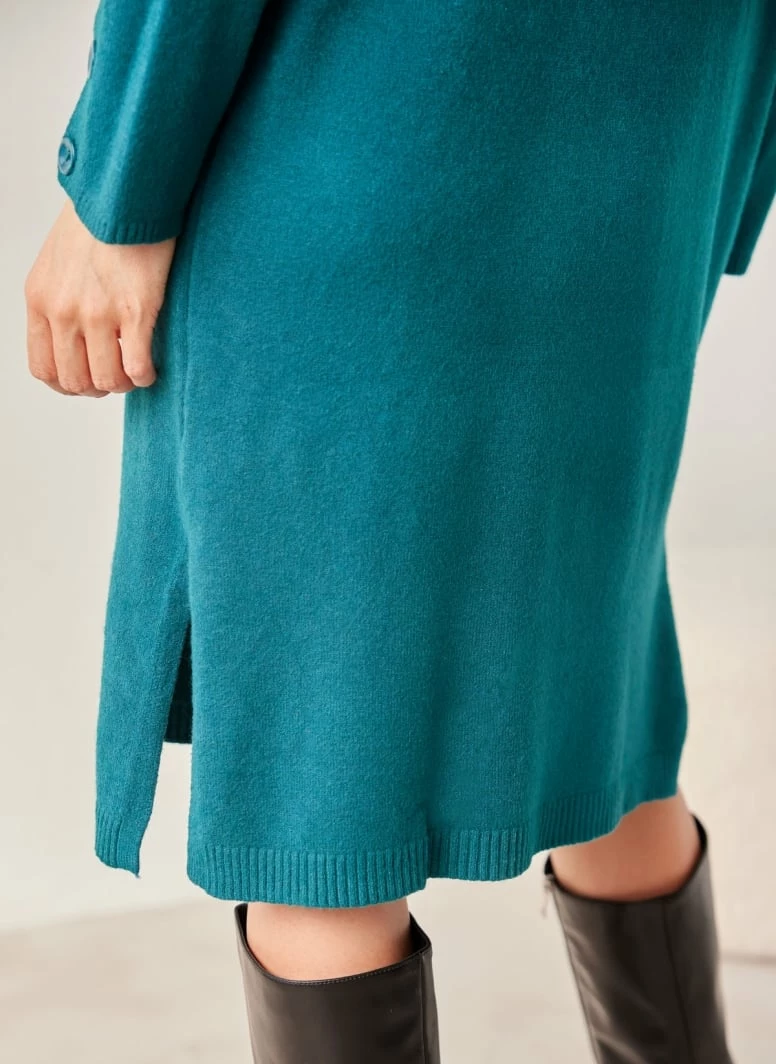 Φτηνός 🧨 The Fashion Project Πλεκτό φόρεμα με κουμπιά στα μανίκια – Petrol 🔔