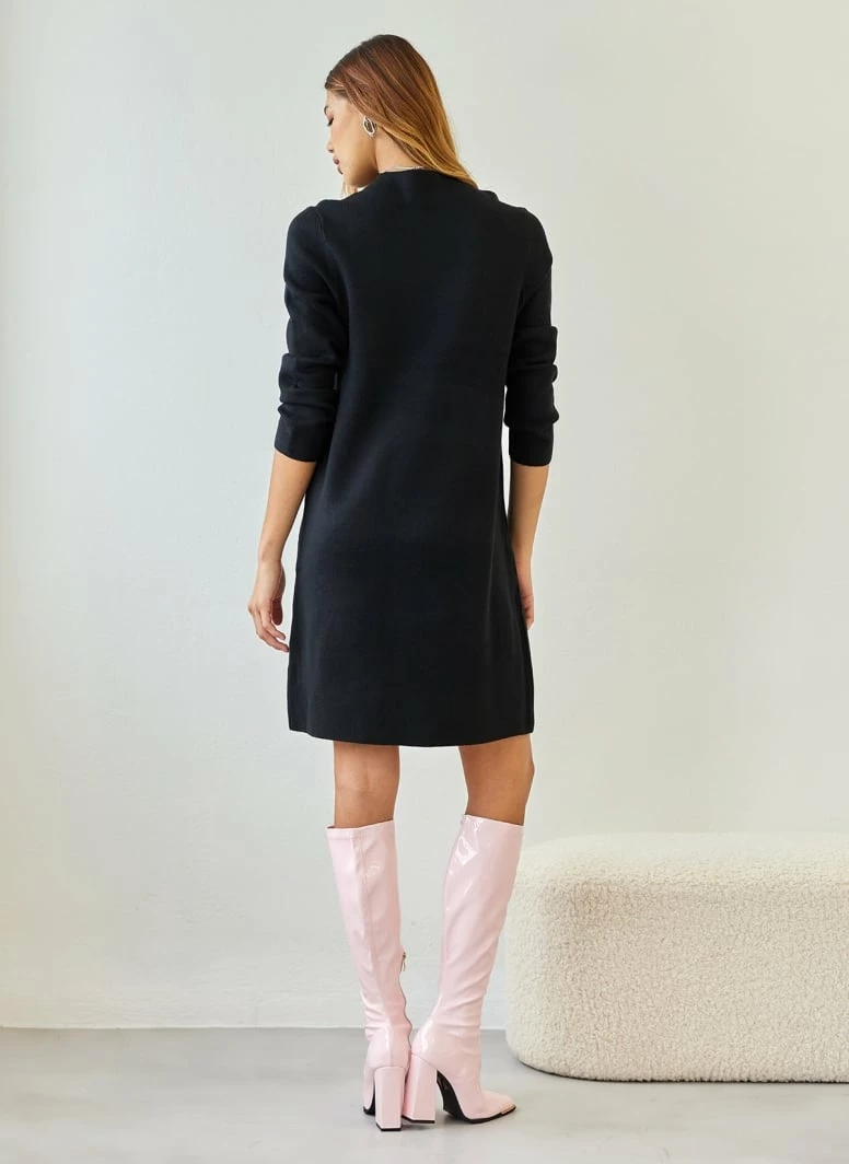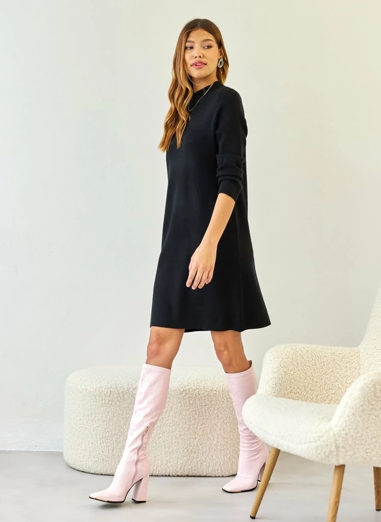 Τοπ 10 🌟 The Fashion Project Πλεκτό φόρεμα με ψηλό γιακά – Μαύρο 😉