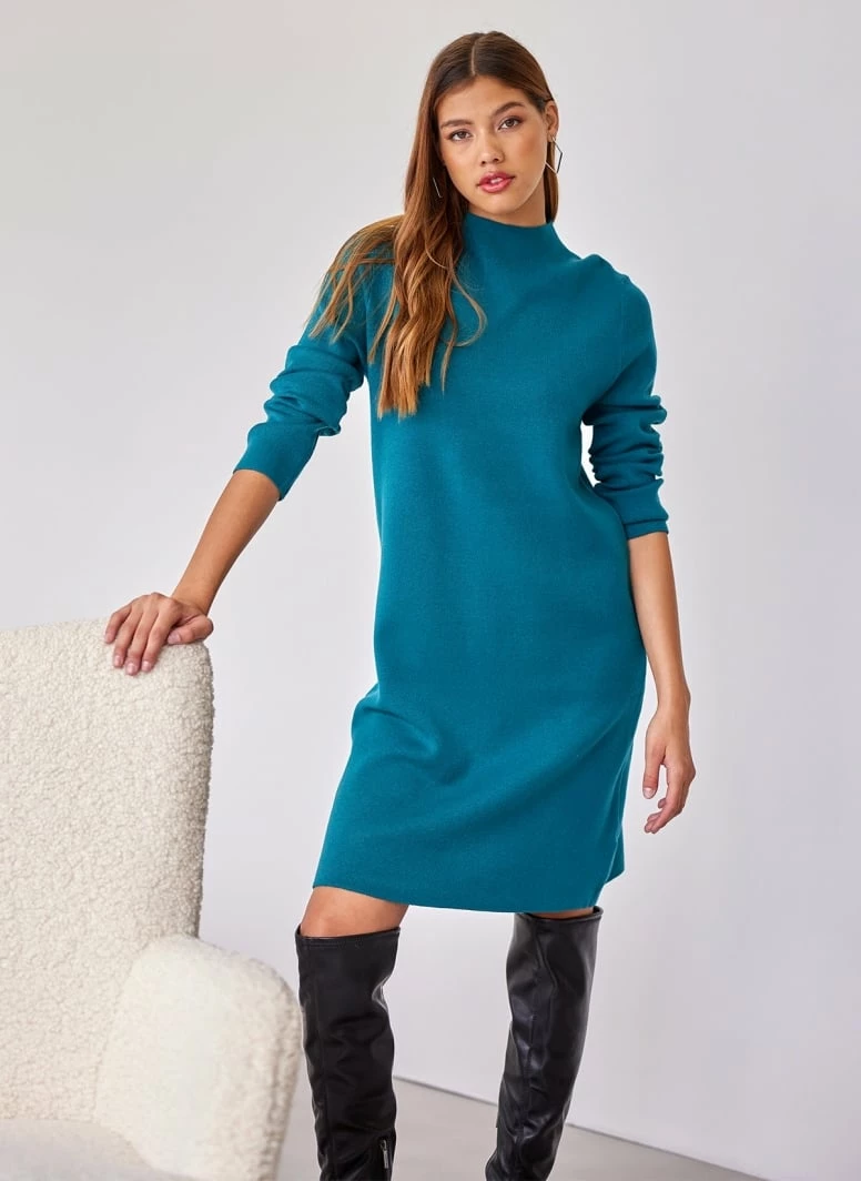 Νέος 😀 The Fashion Project Πλεκτό φόρεμα με ψηλό γιακά – Petrol 🔔
