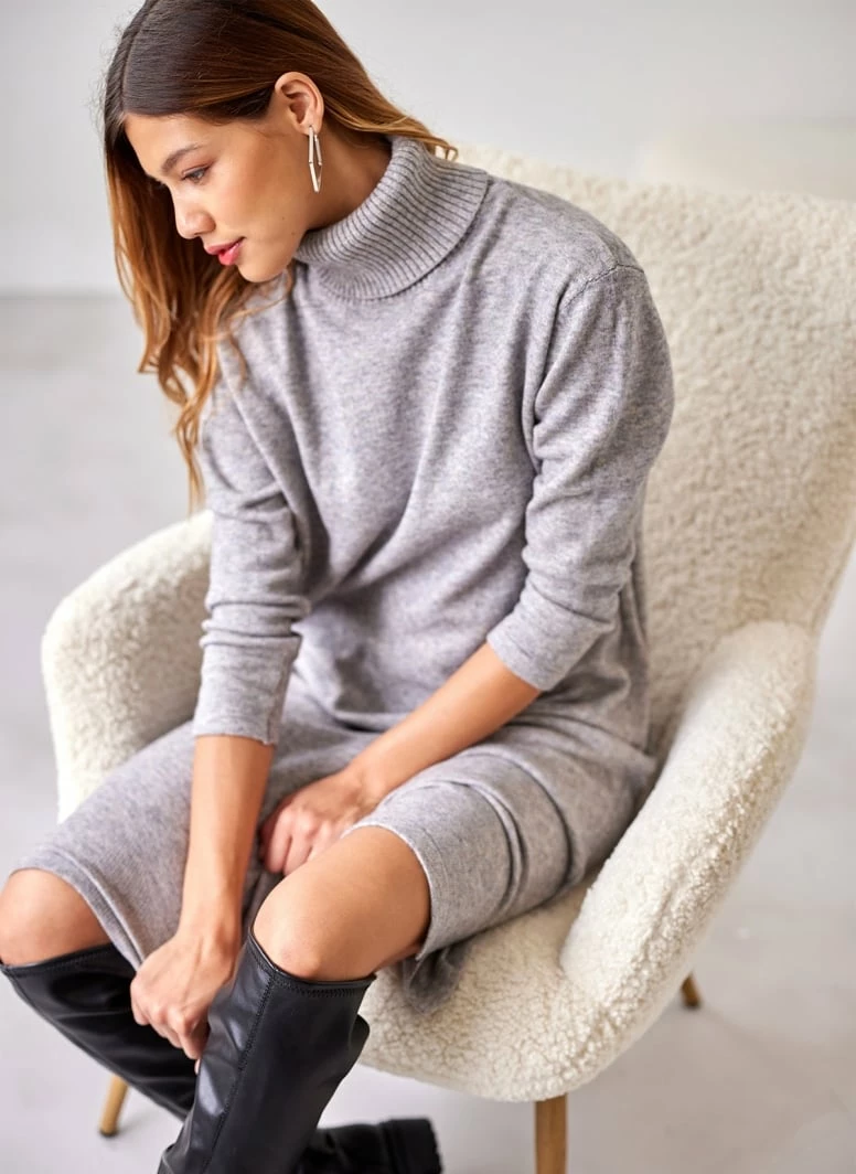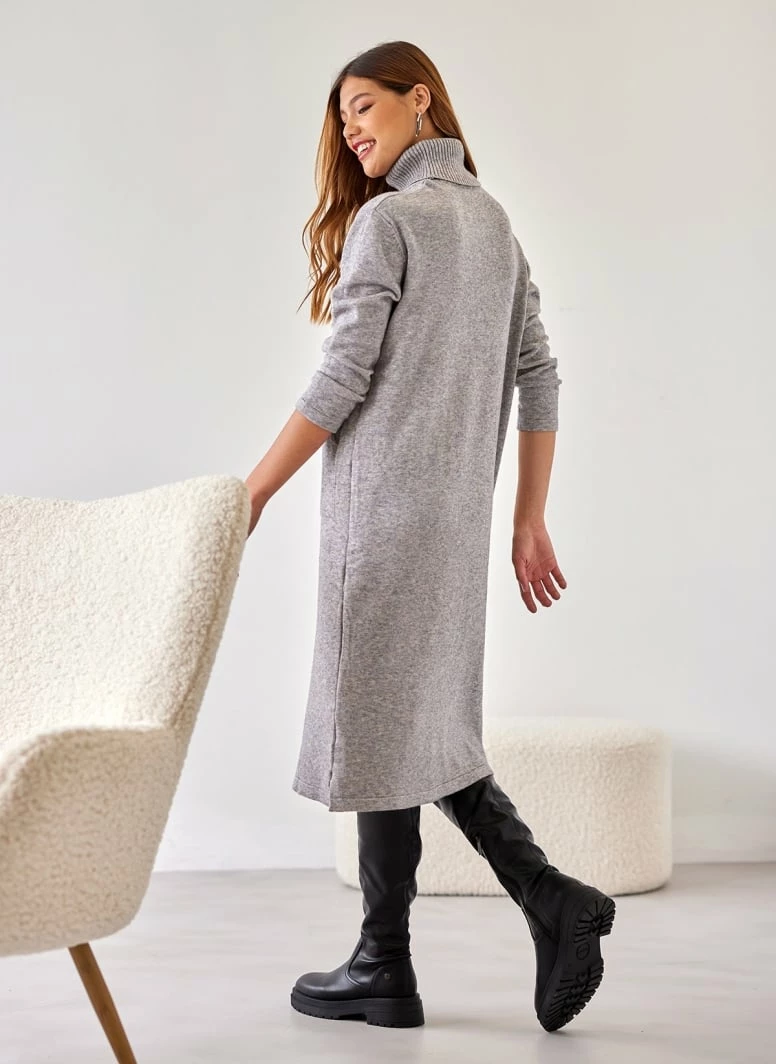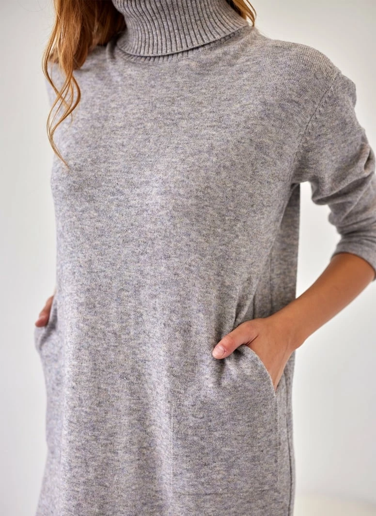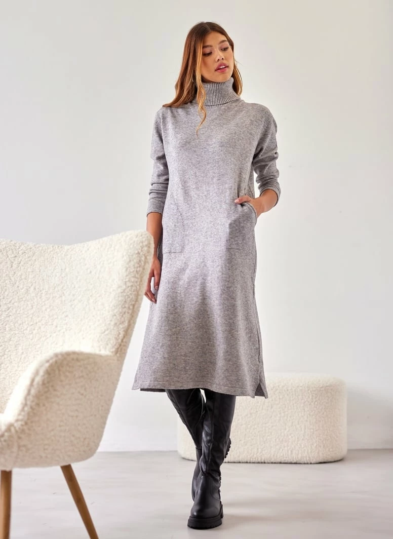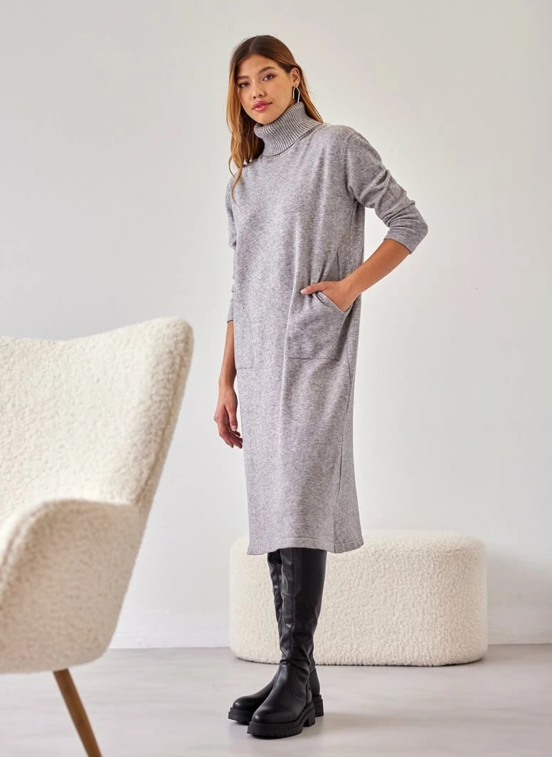 Η καλύτερη συμφωνία ⭐ The Fashion Project Πλεκτό φόρεμα ζιβάγκο με τσέπες – Γκρι 🌟