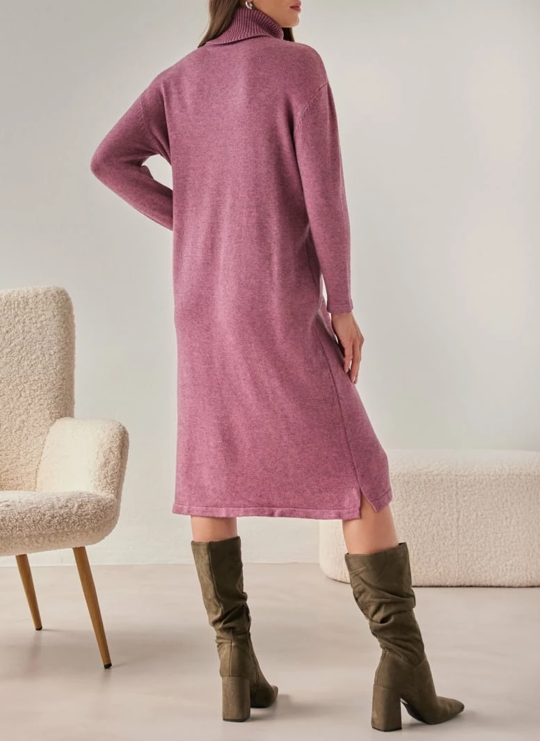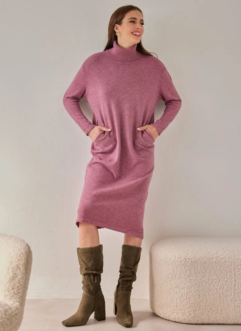 Φόρεμα πλεκτό μίντι ζιβάγκο. Έχει τσέπες και μικρά ανοίγματα στο πλάι. Άνετη γραμμή.