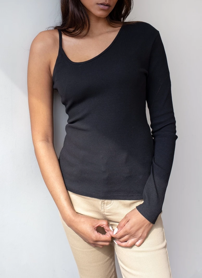 Best Pirce 🌟 The Fashion Project Ριπ τοπάκι με ένα μανίκι – Μαύρο 🔔
