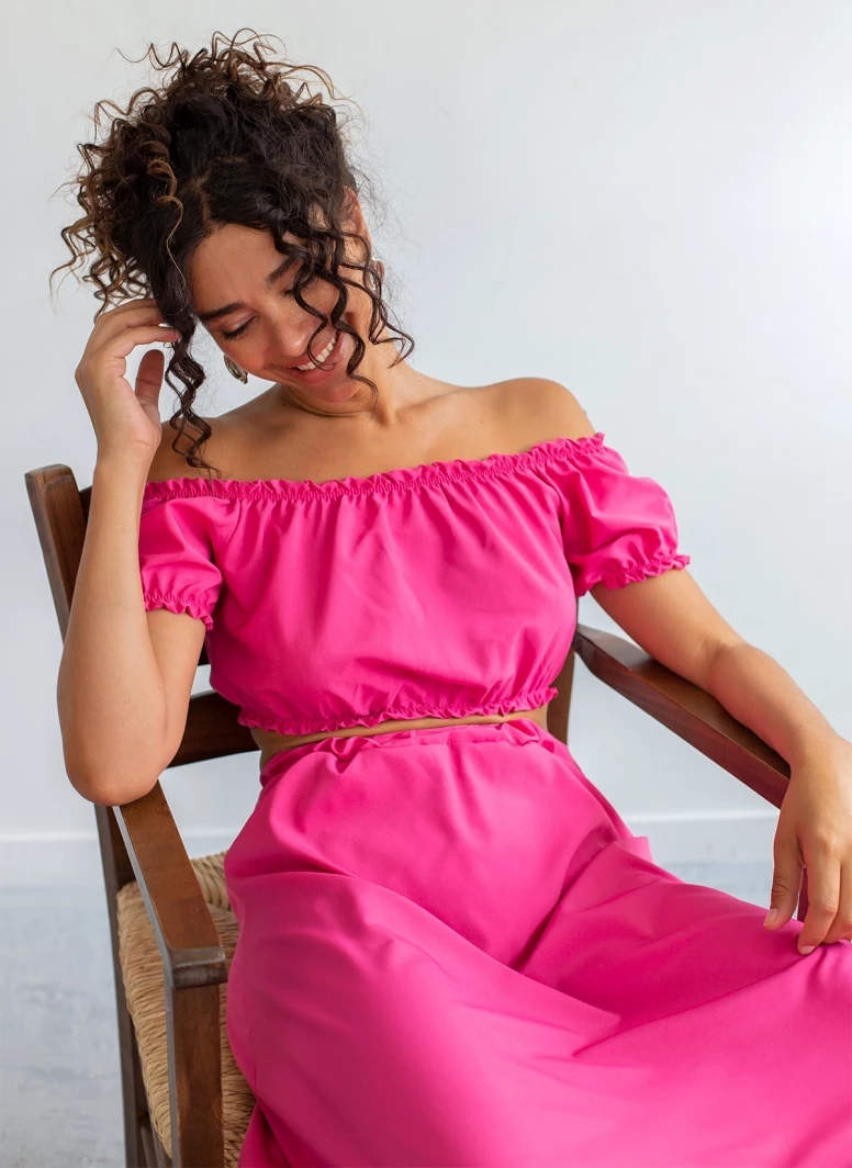 Ολοκαίνουργιο 🤩 The Fashion Project Σετ φούστα με Cropped τοπάκι – Φούξια 🎉