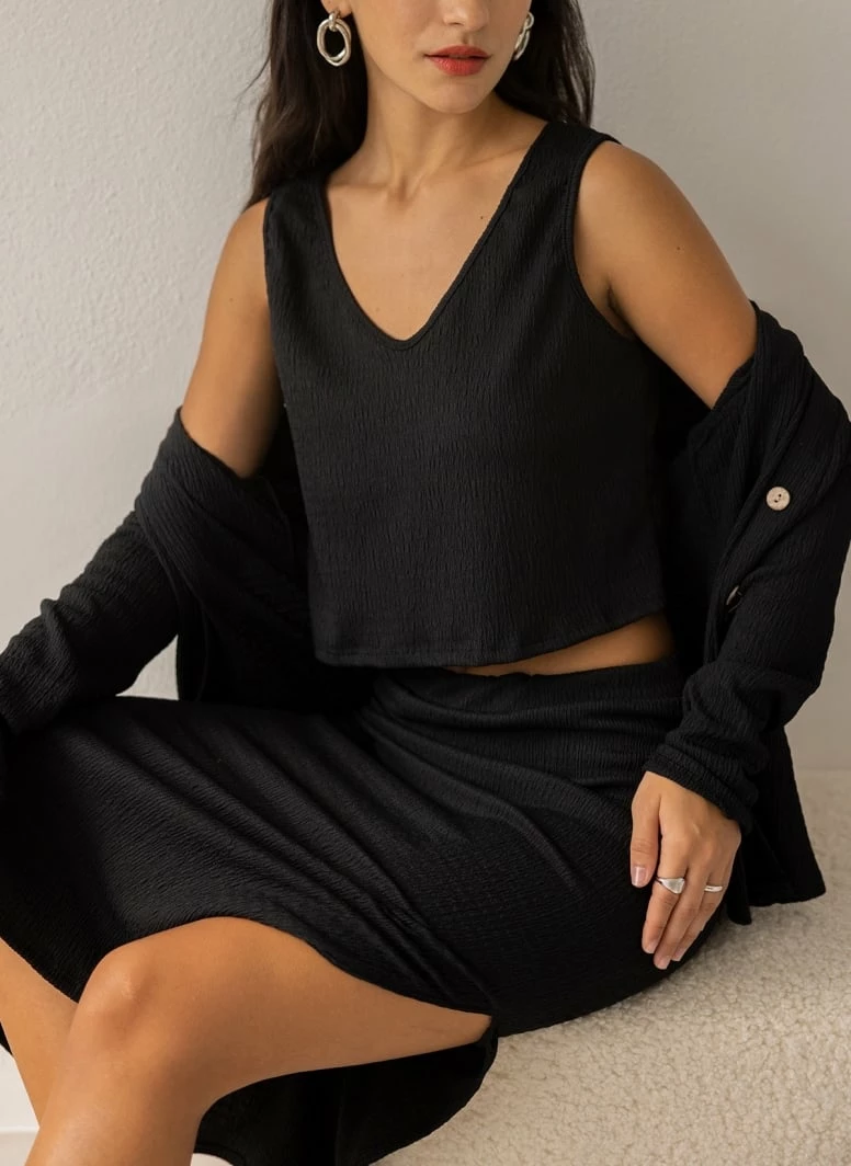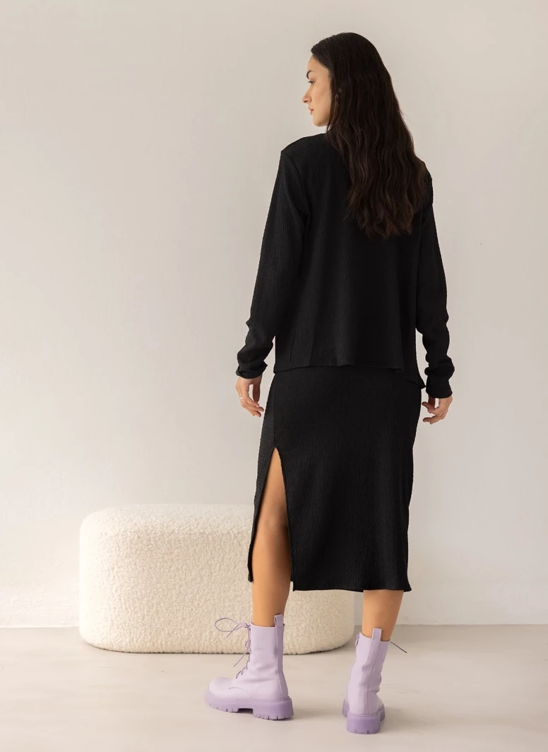 Ολοκαίνουργιο 🔥 The Fashion Project Σετ φούστα με τοπ και ζακέτα – Μαύρο 😀