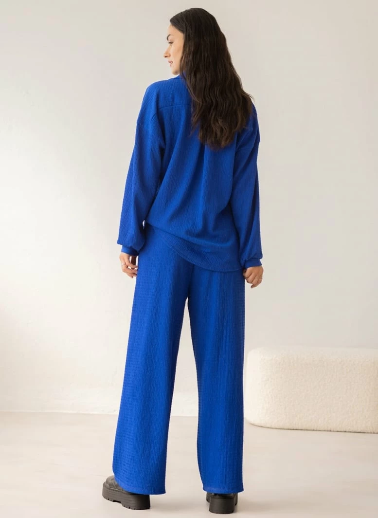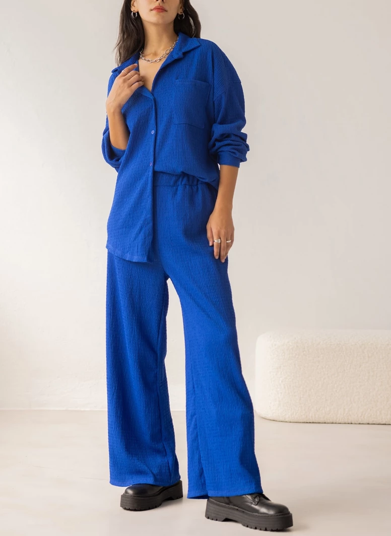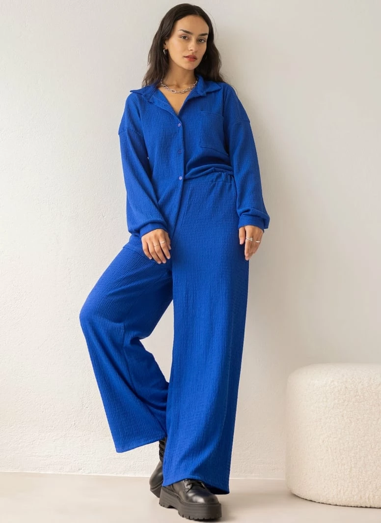 Νέος ⭐ The Fashion Project Σετ γκοφρέ παντελόνα με πουκάμισο – Μπλε 🧨
