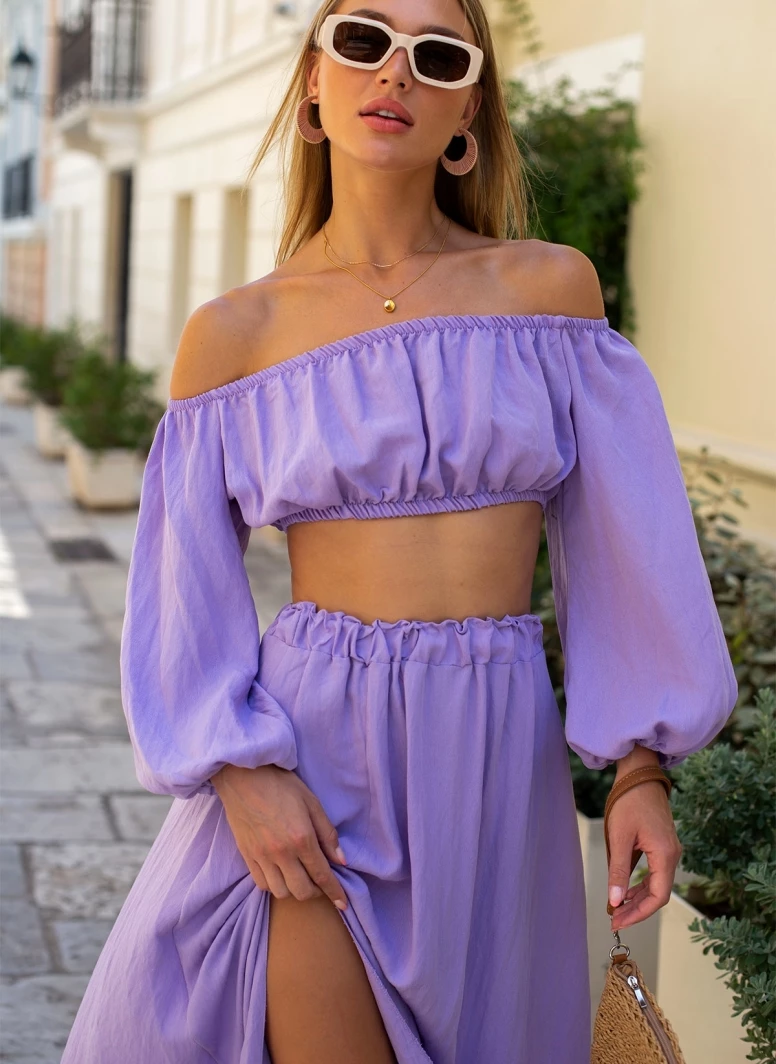 Προώθηση 😉 The Fashion Project Σετ λινή φούστα με Cropped τοπάκι – Λιλά ⭐