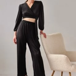 Καλύτερες κριτικές για 🎉 The Fashion Project Σετ γκοφρέ παντελόνι με κρουαζέ τοπ – Μαύρο 🔔