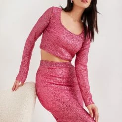Best Pirce 🤩 The Fashion Project Σετ λινή φούστα με τοπάκι – Λιλά 🛒