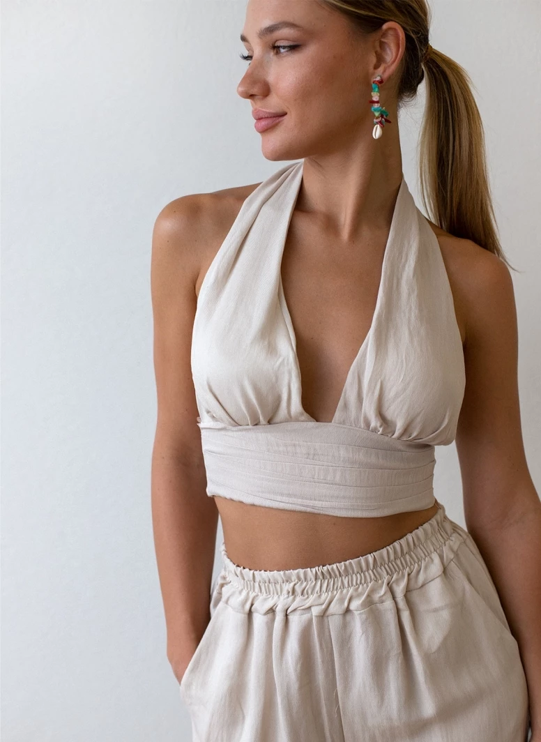 Καλύτερη πώληση 💯 The Fashion Project Σετ λινό παντελόνι με δετό τοπ – Μπεζ 😍