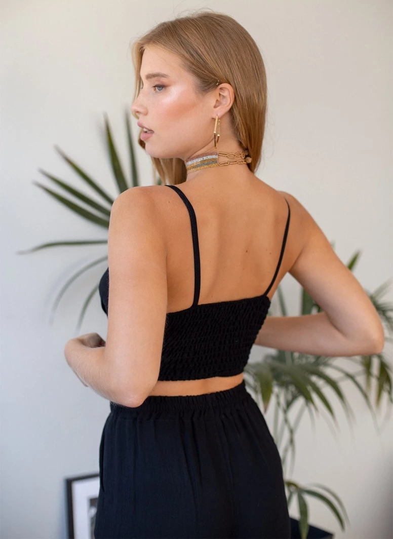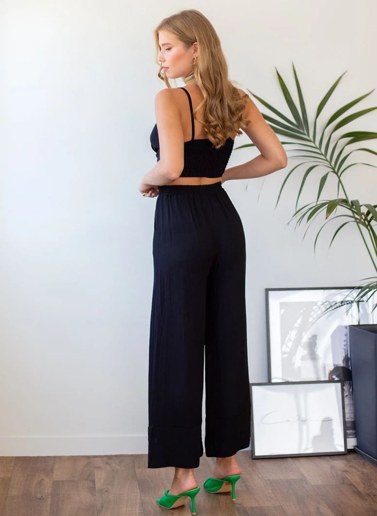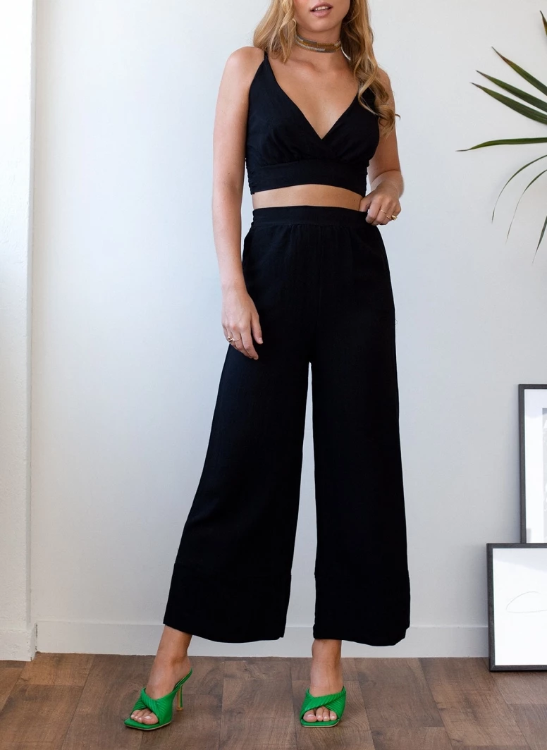 Flash Sale 🔔 The Fashion Project Σετ λινό τοπ με παντελόνι ζιπ – Μαύρο 😀