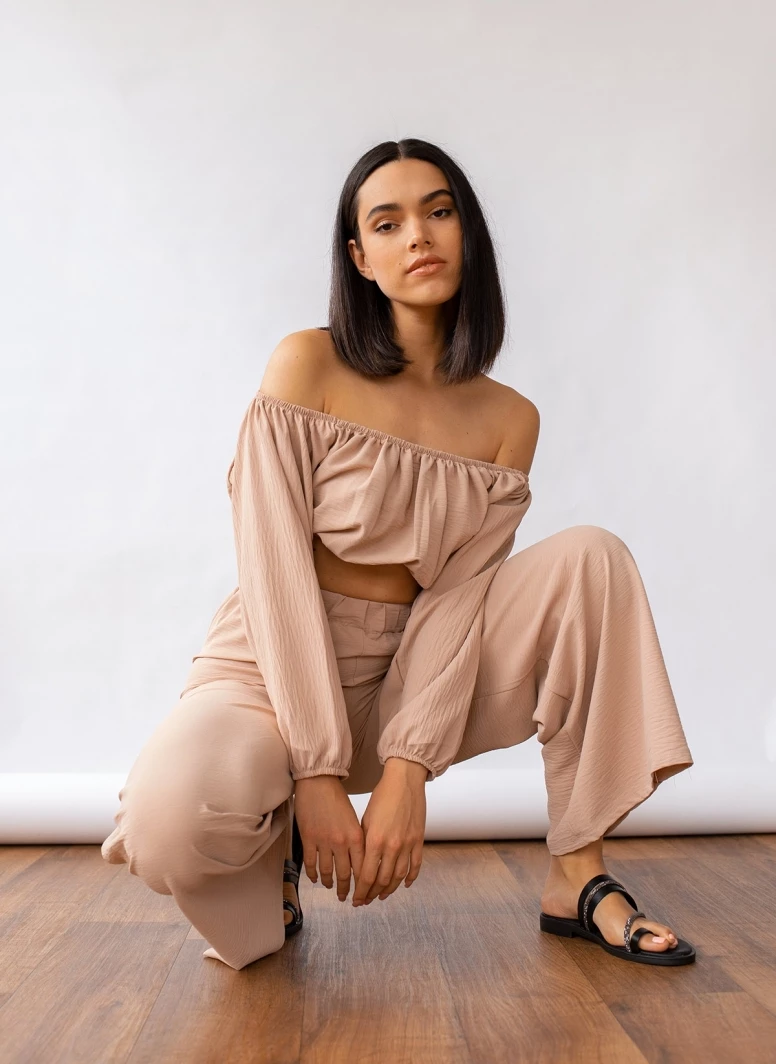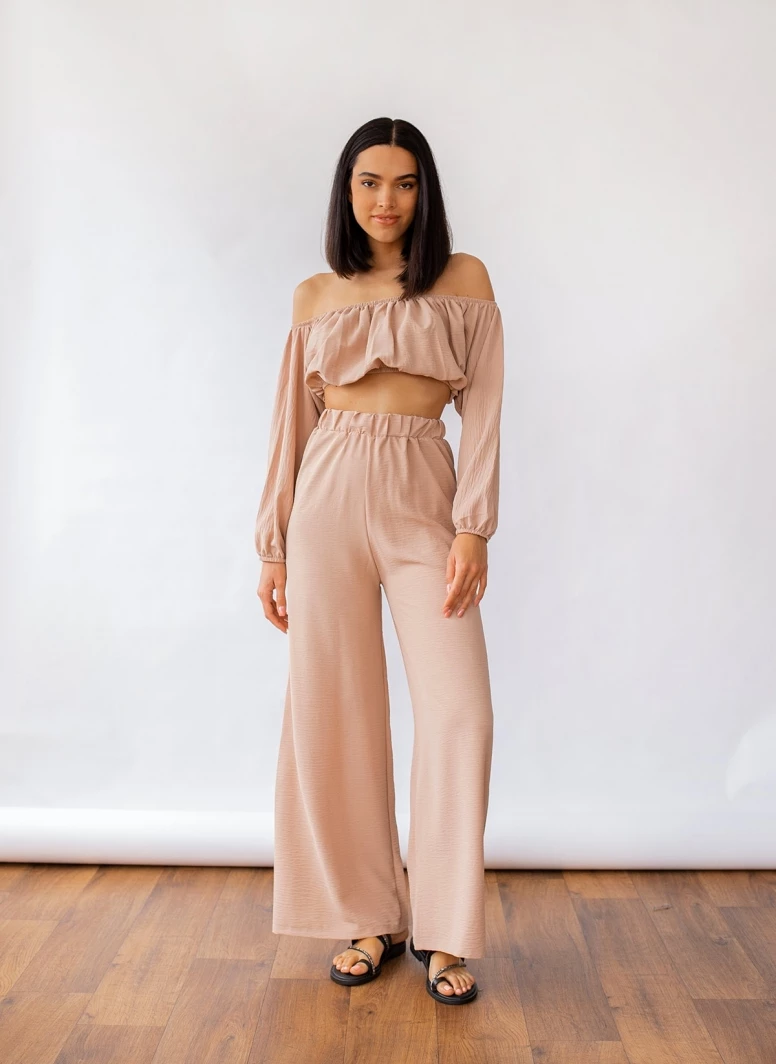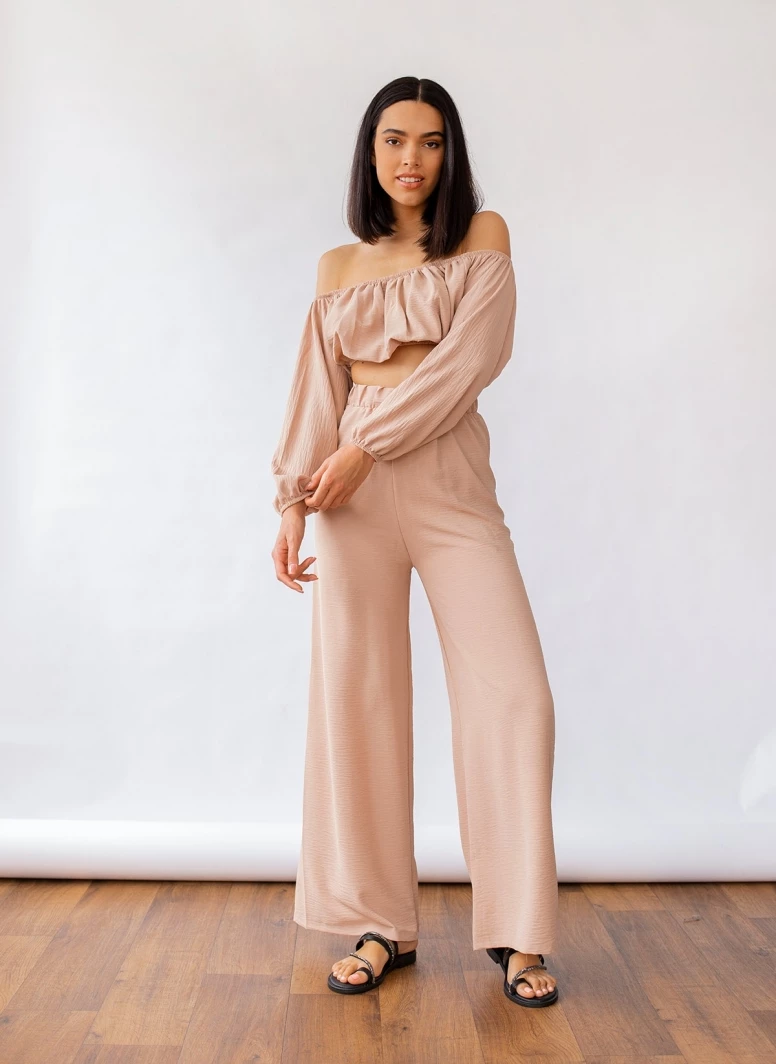 Αγορά ✔️ The Fashion Project Σετ Wide Leg παντελόνι με τοπάκι – Μπεζ 😉